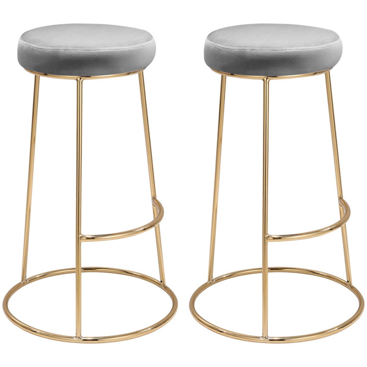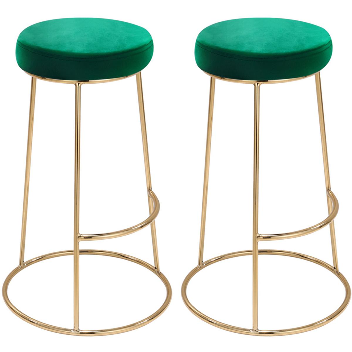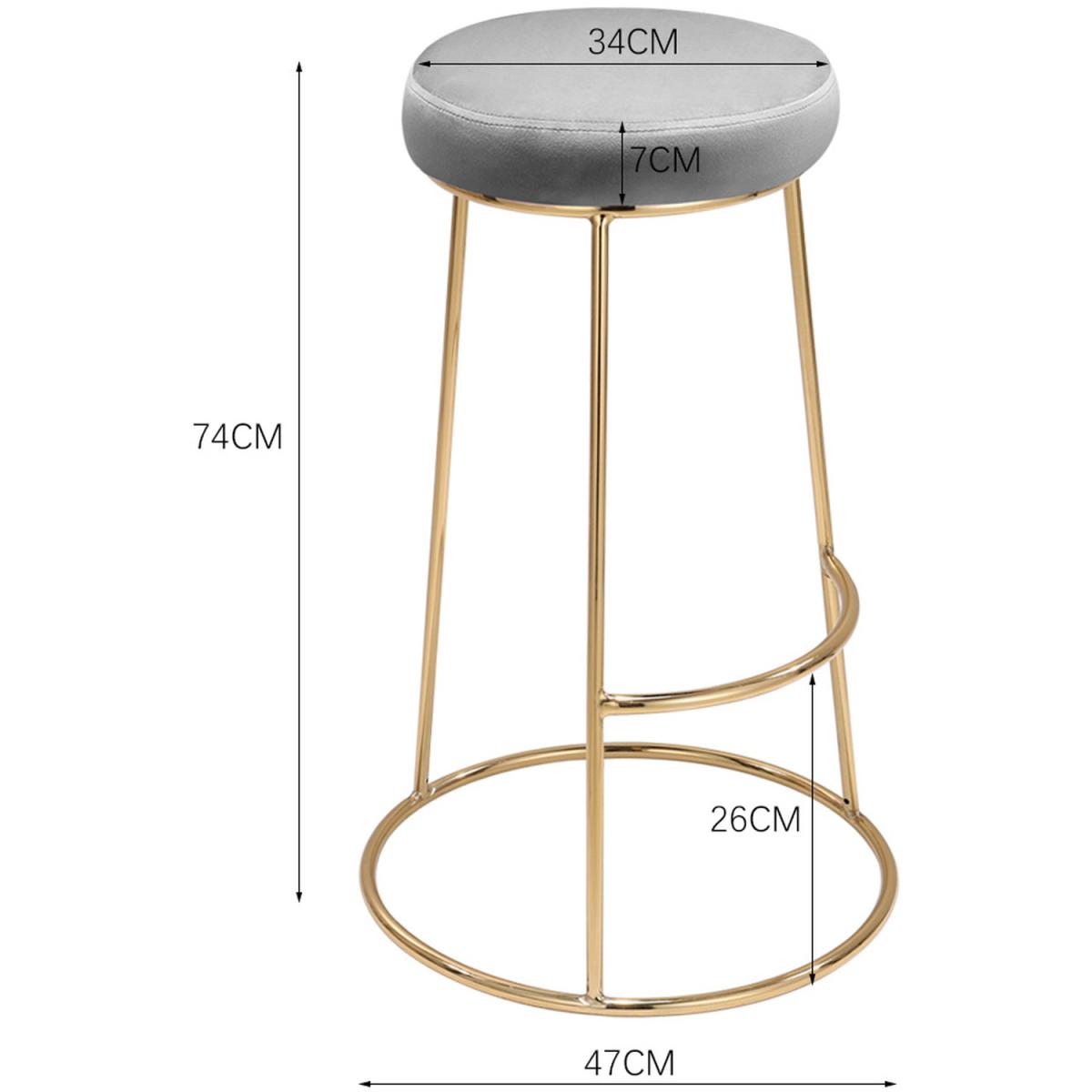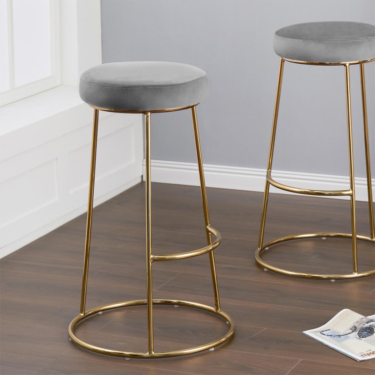 This elegant design with velvet seat and a sturdy golden finish base and legs. Sold in a set of 2. Sturdy steel frame with high load-bearing capacity, plastic foot caps to prevent damage to the floor. Each metal bar stools has a footrest under the seat that provides additional support and stability. This barstool will add a pop of colour to the kitchen, restaurant or modern hotel lounge. Flat packed, Simple assembly steps. Suitable for bars, counter, kitchen island, dining room, coffee room, resting room and so on.