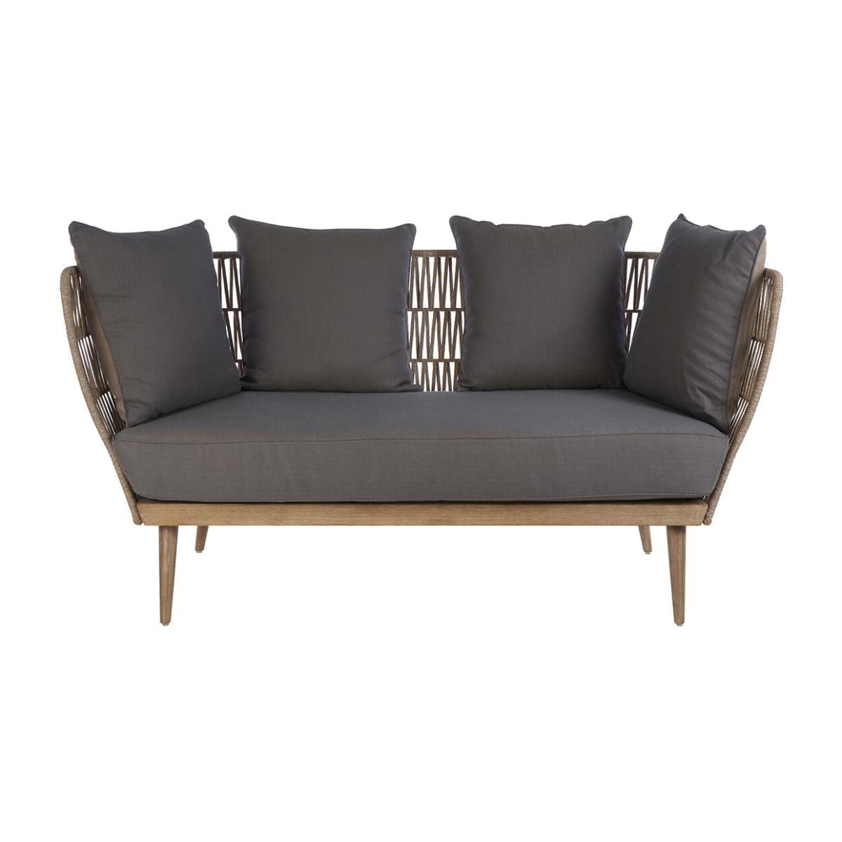 This sofa houses plump, comfortable cushioning in a natural wood and rope framework. Self Assembly Required. Product Dimensions: Weight: 35kg, Length: 89cm, Width: 184cm, Height: 94cm Height from floor to seat - 32.5cm. Armrest Height - 94.3cm. Please remember to measure your available space before ordering. Packaged Dimensions: Weight: 45kg, Length: 191cm, Width: 91cm, Height: 72cm. This product will be dispatched by one of our trusted suppliers. You’ll be contacted by their selected courier about your delivery. PREMI01