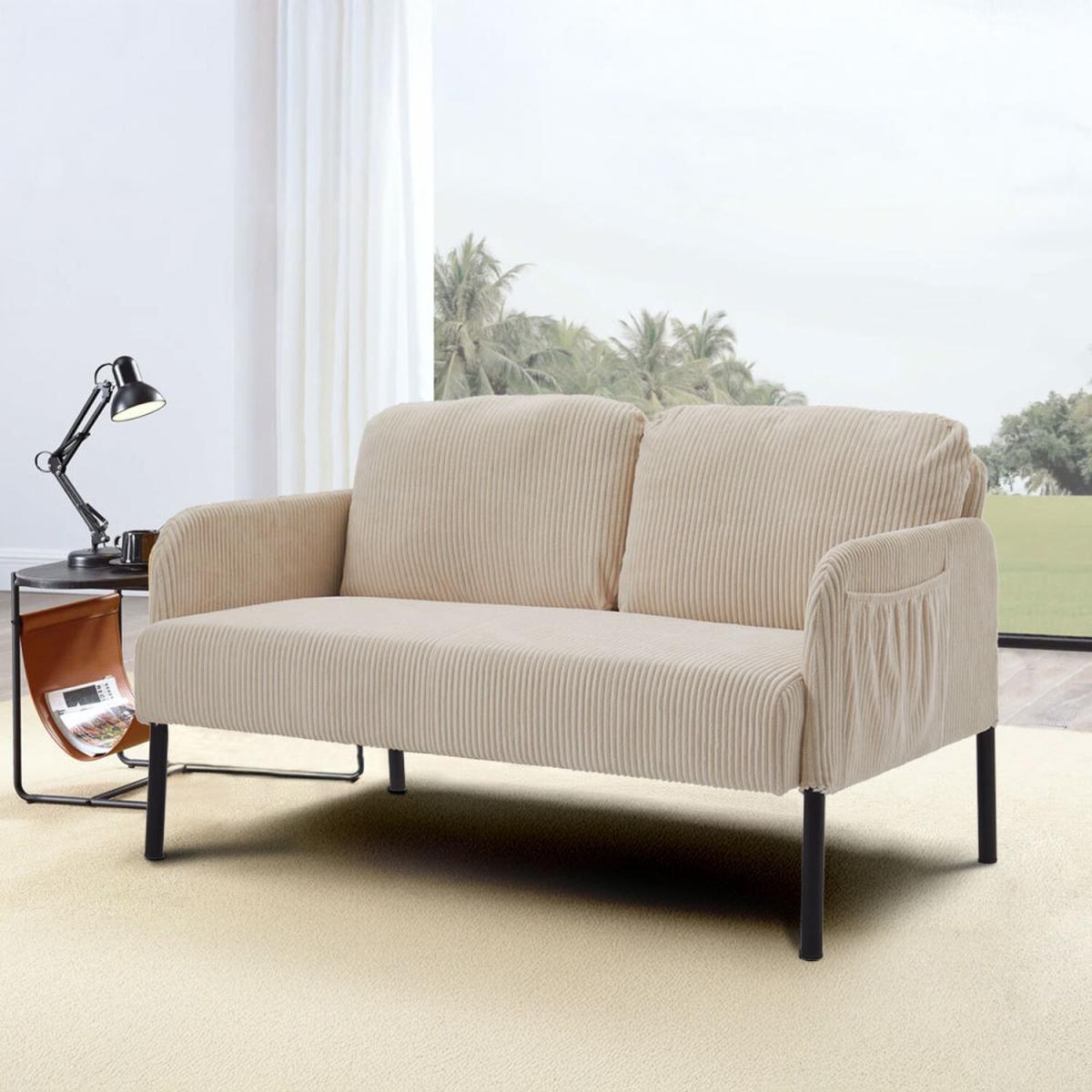 This two-seat sofa features corduroy upholstery, providing a cosy and inviting texture. The unique ribbed fabric adds visual appeal while giving the piece a vintage yet chic look. Built on a sturdy wooden frame, it offers reliable support and long-lasting durability. Ideal for both modern minimalist and industrial-style interiors, this sofa is a stylish focal point in any living room.