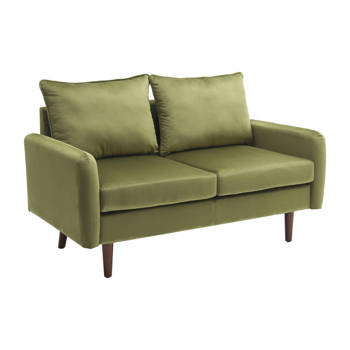 Drenched in premium velvet upholstery, this 2-seat sofa effortlessly elevates any room with its vibrant green hue, striking the perfect balance between comfort and style. Supported by sturdy walnut legs, it boasts a weight capacity of up to 250K. G, ensuring durability and stability. Sink into its plush 28. D foam-filled cushions for unparalleled relaxation, while the low armrests provide a cozy spot for resting your arms. Complete with two accompanying cushions, this sofa offers both comfort and charm. Simple assembly makes it a hassle-free addition to your living room or bedroom, instantly transforming your space with its chic and inviting design.