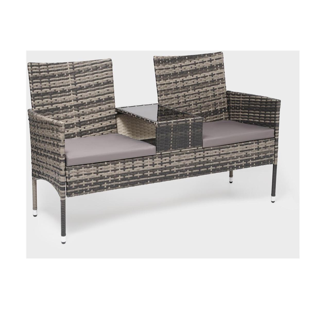 Elevate your outdoor living space with the 2 Seater Garden Loveseat Bench with Table. Perfect for cosy conversations or peaceful relaxation, this elegant loveseat combines comfort and practicality to make every garden moment special. 2 Seater Garden Loveseat Bench With Table - Grey