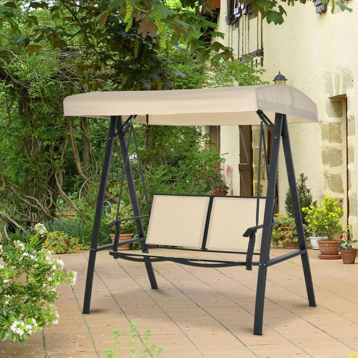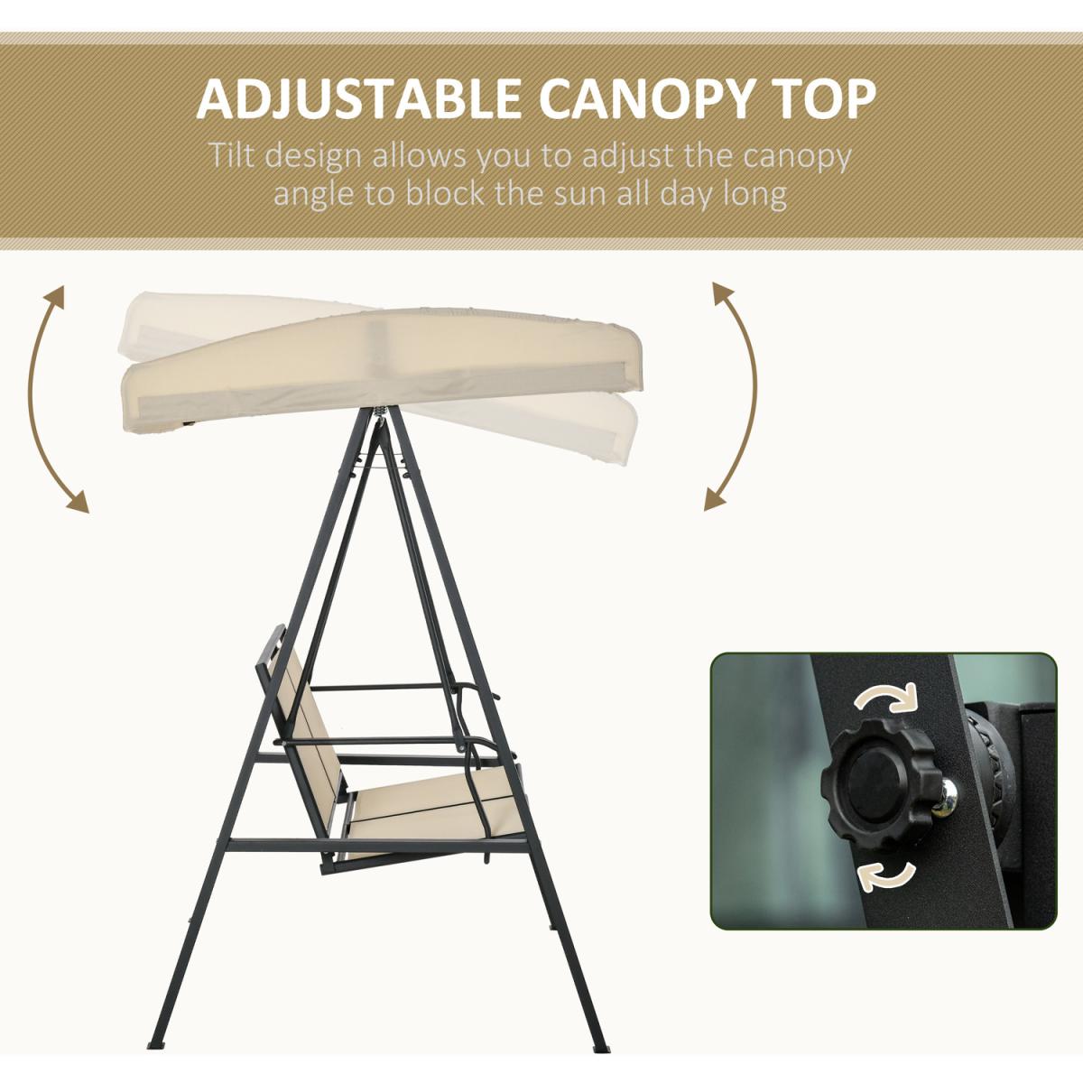 Enjoy the beautiful weather with company when you lounge on this Outsunny garden swing. The steel frame is strong, with 'A' shaped legs. There's an adjustable overhead canopy - you can change the angle to suit and keep you protected from sun and light weather at different positions. Designed for comfort and style, this metal frame garden swing allows you to gently sway the day away.