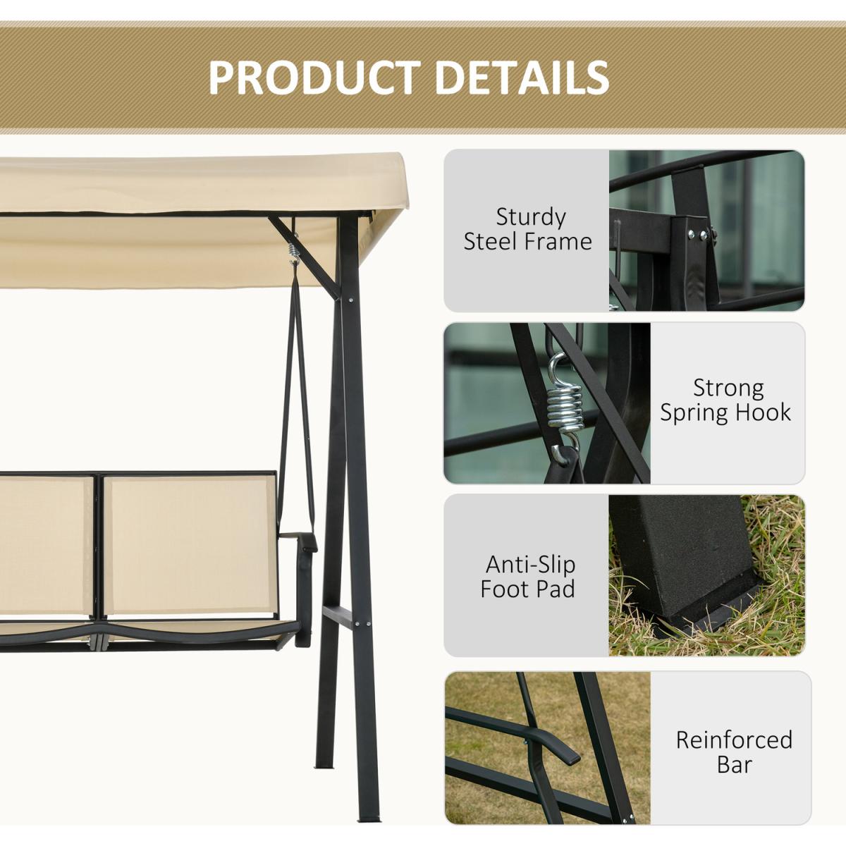 2 Seater Garden Swing Chair Outdoor Hammock Bench - Beige
