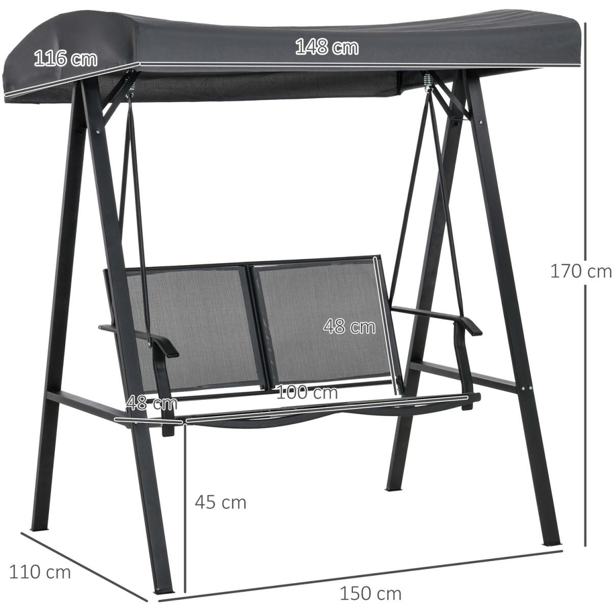 Enjoy the beautiful weather with company when you lounge on this Outsunny garden swing. The steel frame is strong, with 'A' shaped legs. There's an adjustable overhead canopy - you can change the angle to suit and keep you protected from sun and light weather at different positions. Designed for comfort and style, this metal frame garden swing allows you to gently sway the day away.