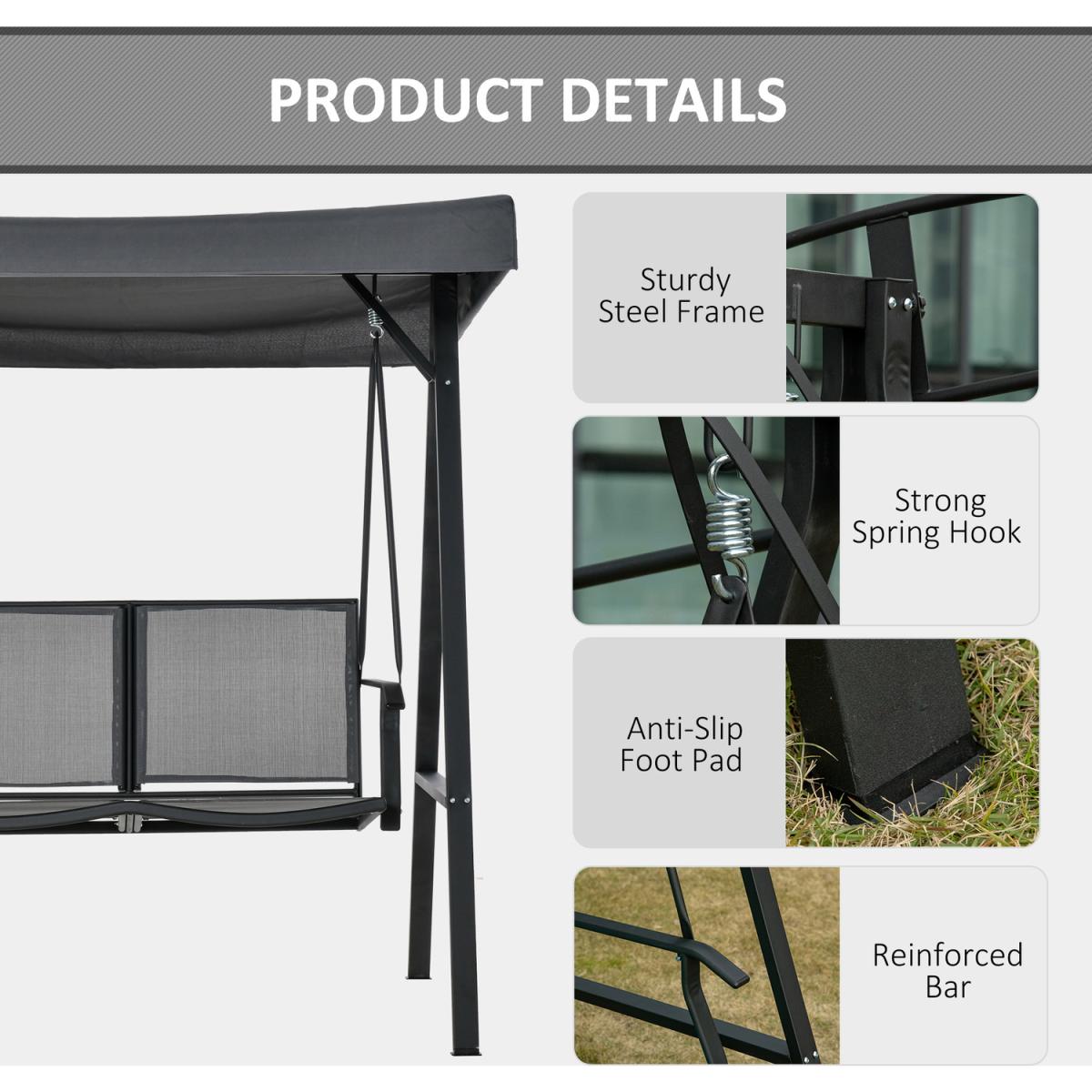 2 Seater Garden Swing Chair Outdoor Hammock Bench - Dark Grey