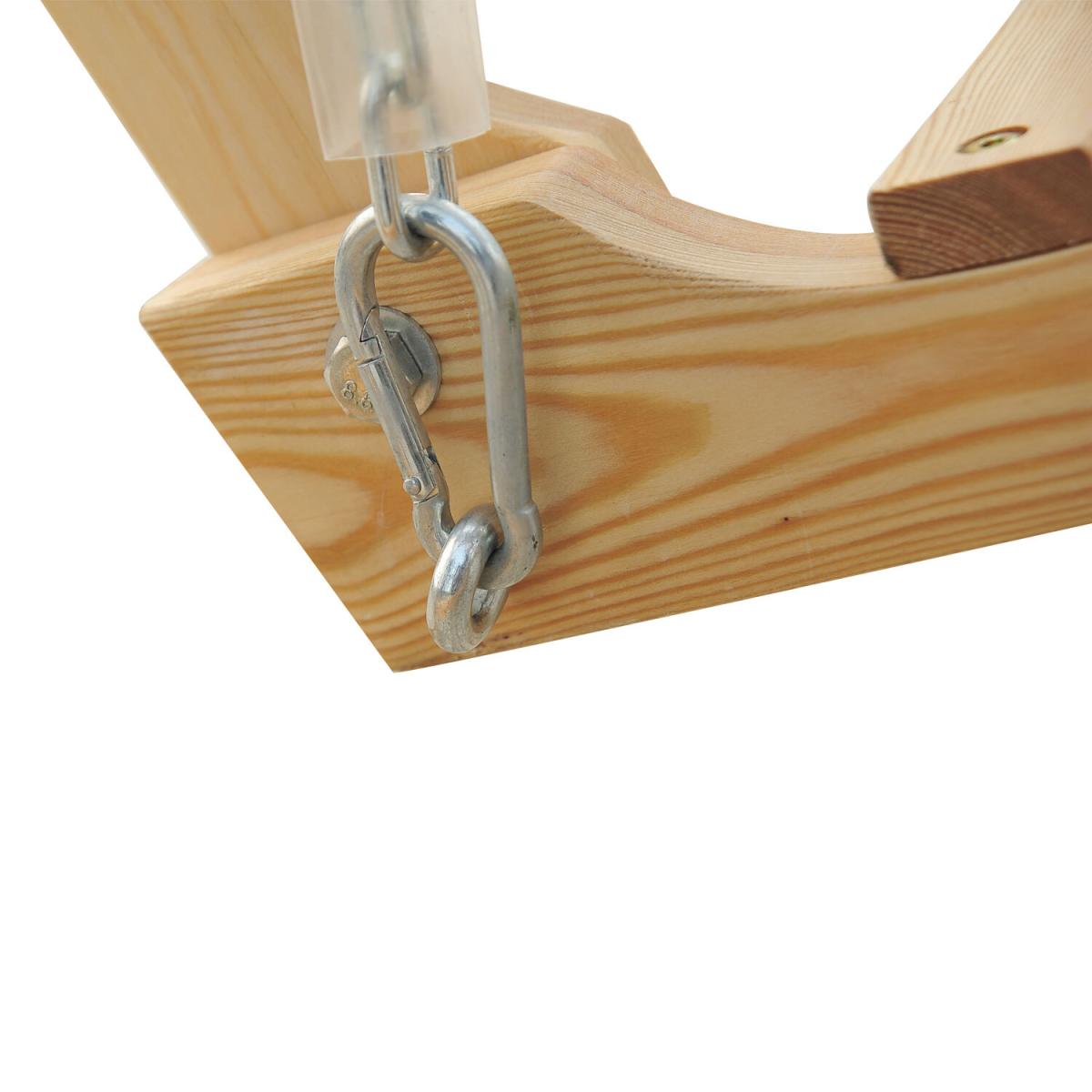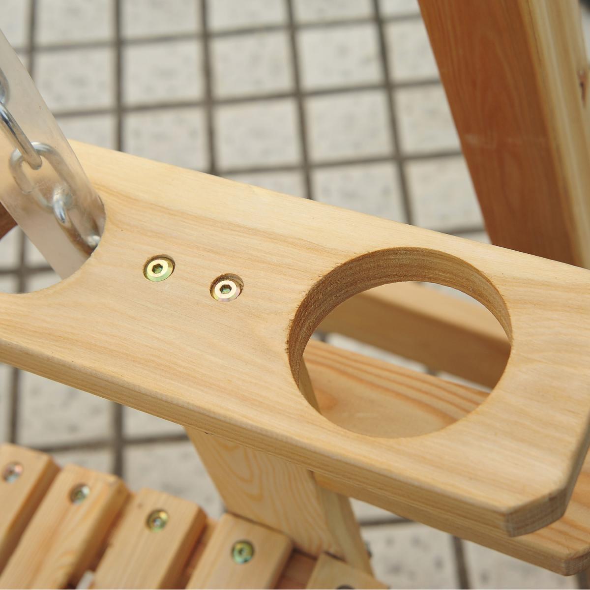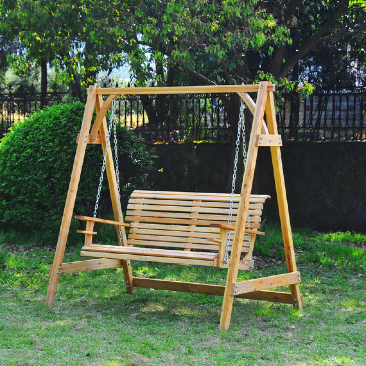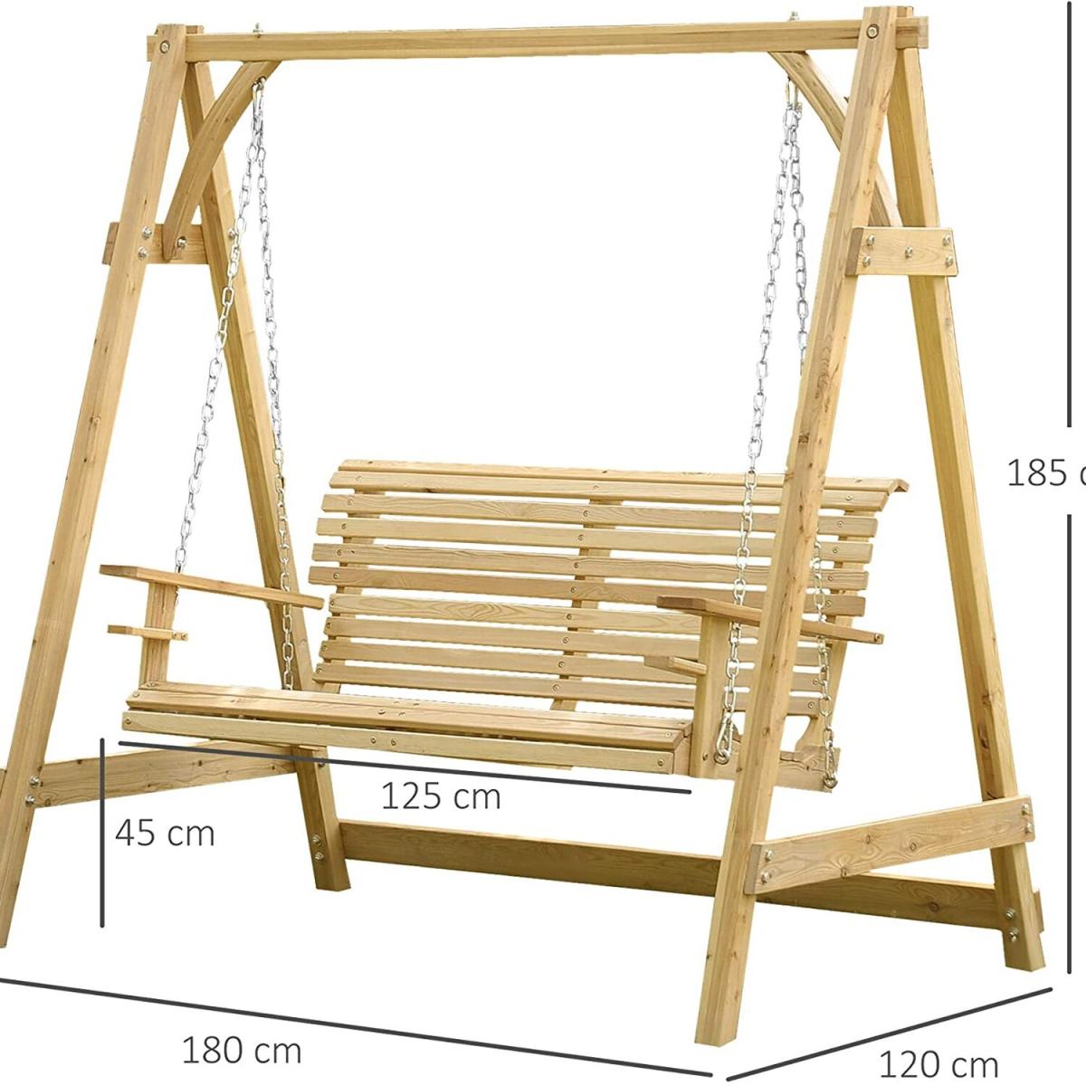 Set this beautiful swing chair and stand up in minutes and start enjoying the great outdoors! humanism design lets you really Stretch out for maximum relaxation. And this swing chair adds great style to any back yard, porch or patio. This simple and elegant swing chair is made from high quality Russian Larch wood and galvanized steel chains. Sturdy construction and easy installation. This 2 seater garden swing chair will looks amazing in your back yard or garden. Specifications: approx. overall size: (l) 162 x (W) 125 x (h) 185cm bench size about: (l) 125 x (W) 55 x (h) 56cm weight capacity: 240kg for up to 2 people made from high quality Russian Larch wood, which is very sturdy and durable. Environmental protection paint. 6 MM diameter thick galvanized metal chain, and the outside is protected with PVC casing. Easy installation custom label: 01-0862