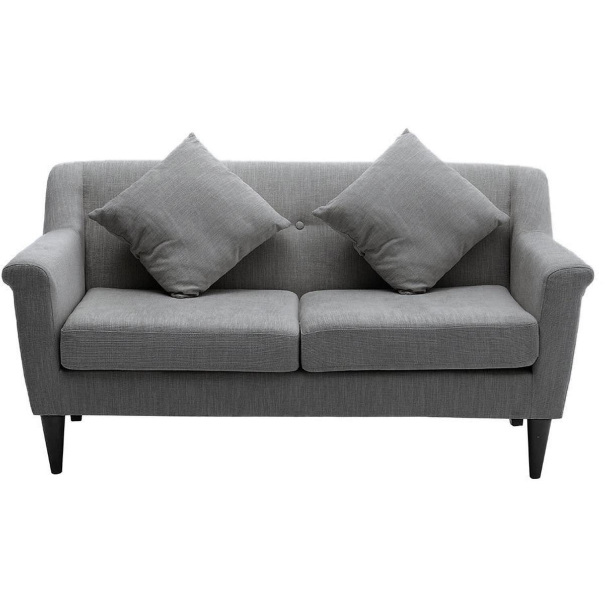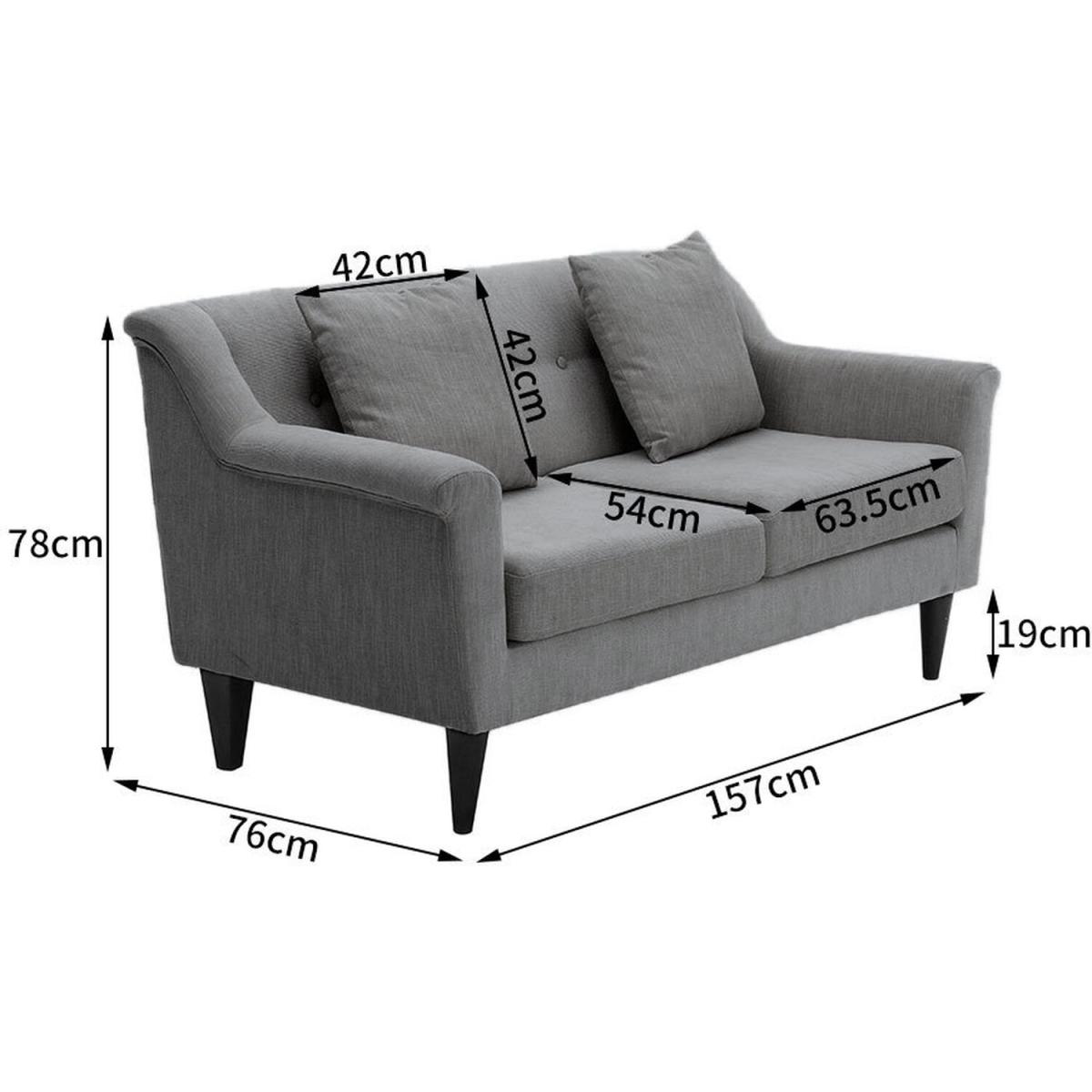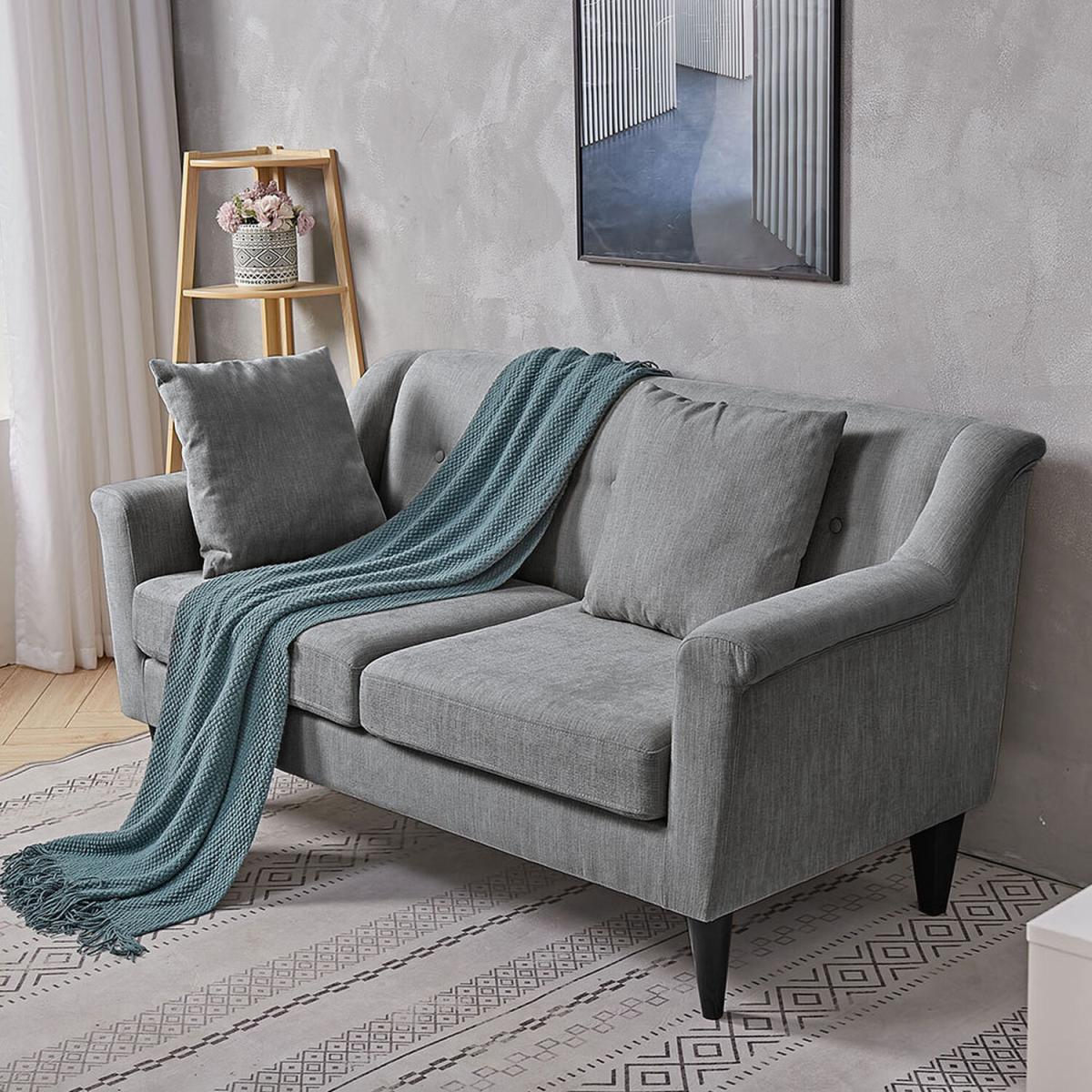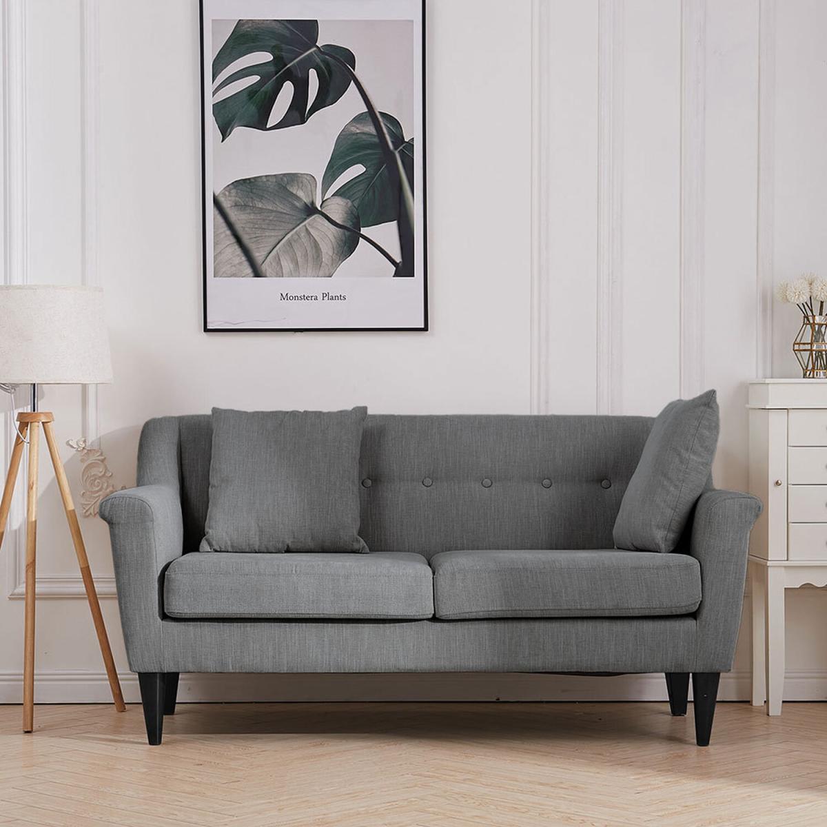 2 Seater Linen Fabric Buttoned Back Sofa with Pillow - Grey