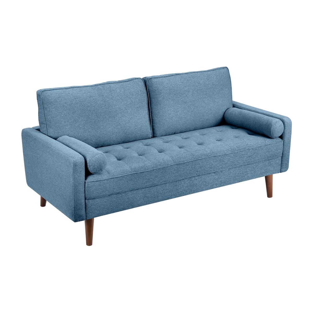 I love this two-seater in blue for its versatile, mid-century inspired design and cheerful colour. It works well in both contemporary and classic interiors, adding a pop of colour without overwhelming the space. To style it effectively, consider pairing with neutral or patterned cushions to create a cosy, inviting look. It also pairs nicely with wooden or metallic accents, making it a flexible piece for various colour schemes. For practicality, it’s perfect in living rooms or small spaces where space-efficient seating is needed, and its sleek profile ensures it won’t feel bulky. Overall, it’s a smart, stylish choice that can seamlessly elevate a room’s aesthetic while remaining practical and comfortable.
