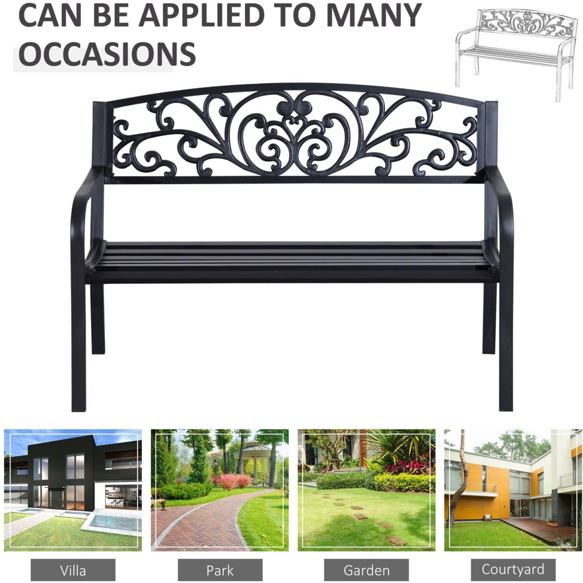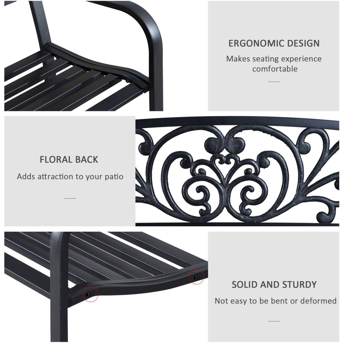 The garden bench from Outsunny is ideal for enjoying your favourite peaceful spot, along a path, under a tree, or among the flowers. This product is constructed with a steel frame. Relax with friends or family and enjoy the scenery of your outdoor space. The tough steel construction and 120 cm length of this patio garden bench allow for 2 individuals to comfortably sit and relax at once.