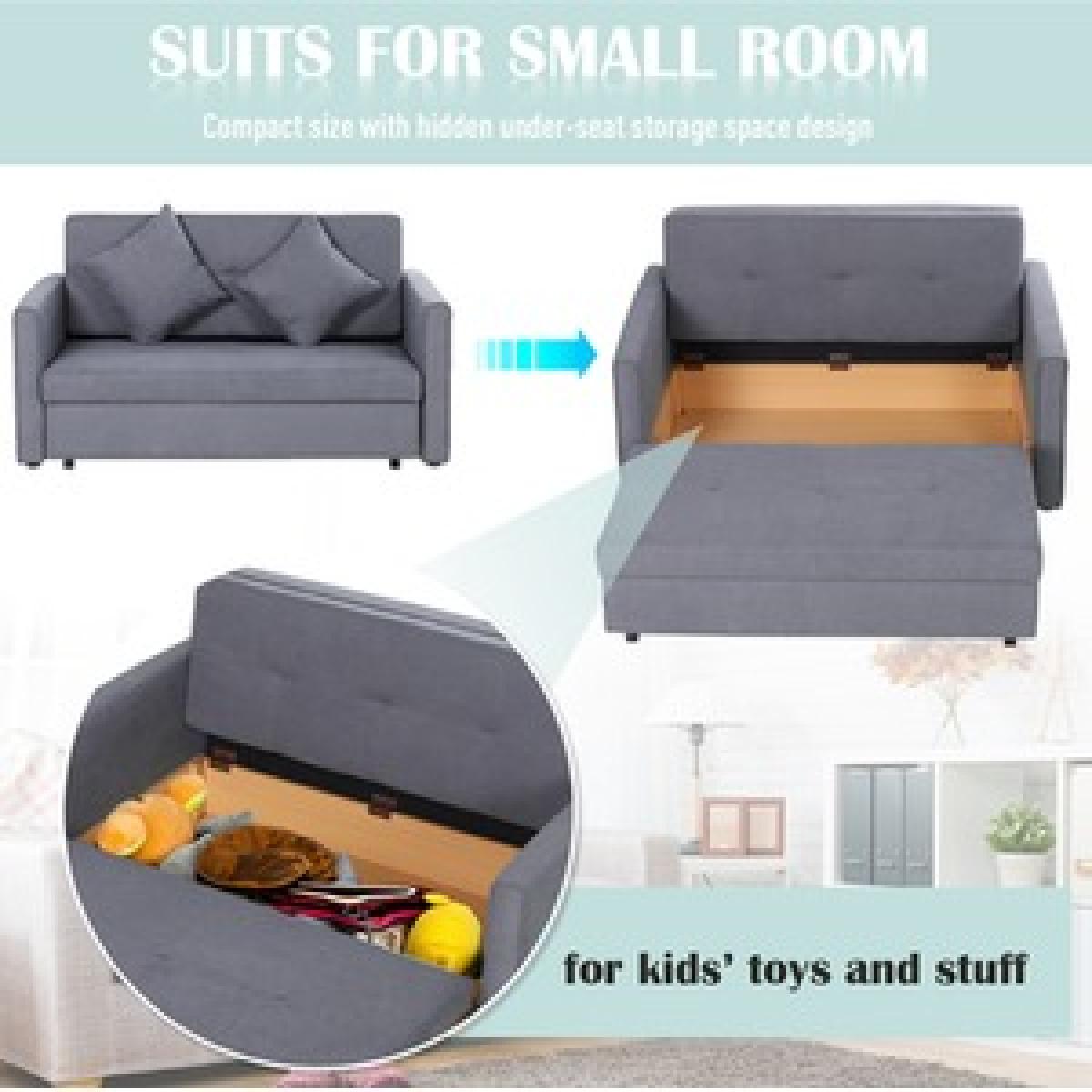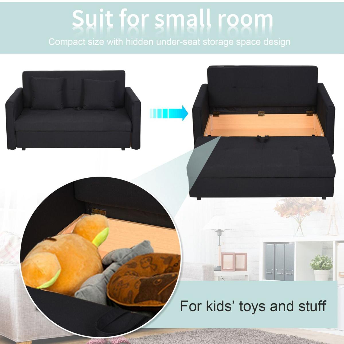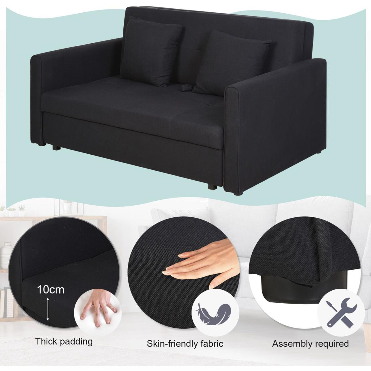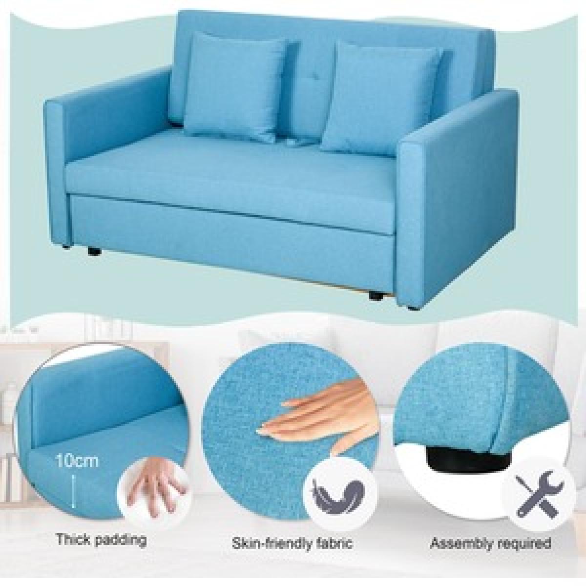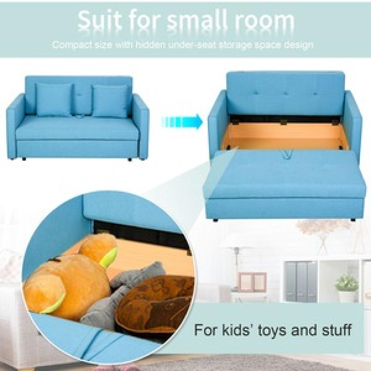 This wonderful sofa bed no less. Finished in blue which allows itself to effortlessly welcome itself into your home, it is built into a sturdy and durable 152cm wide design, with a solid wood frame that can hold up to 200kg over the two seats, with 10cm thick sponge for comfort and support as you rewind. As well as converting to a sofa bed, the seat lifts up to reveal storage space, making it ideal for homes lacking on space, as well as being the perfect place to hold any bedding needed for your guests. Wrapped in polycotton for easy maintenance, it is finished with two removable cushions and feet to keep it level whilst protecting your floor.