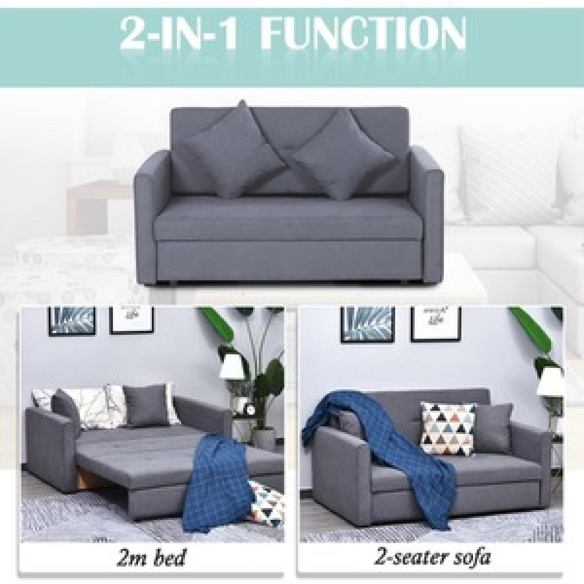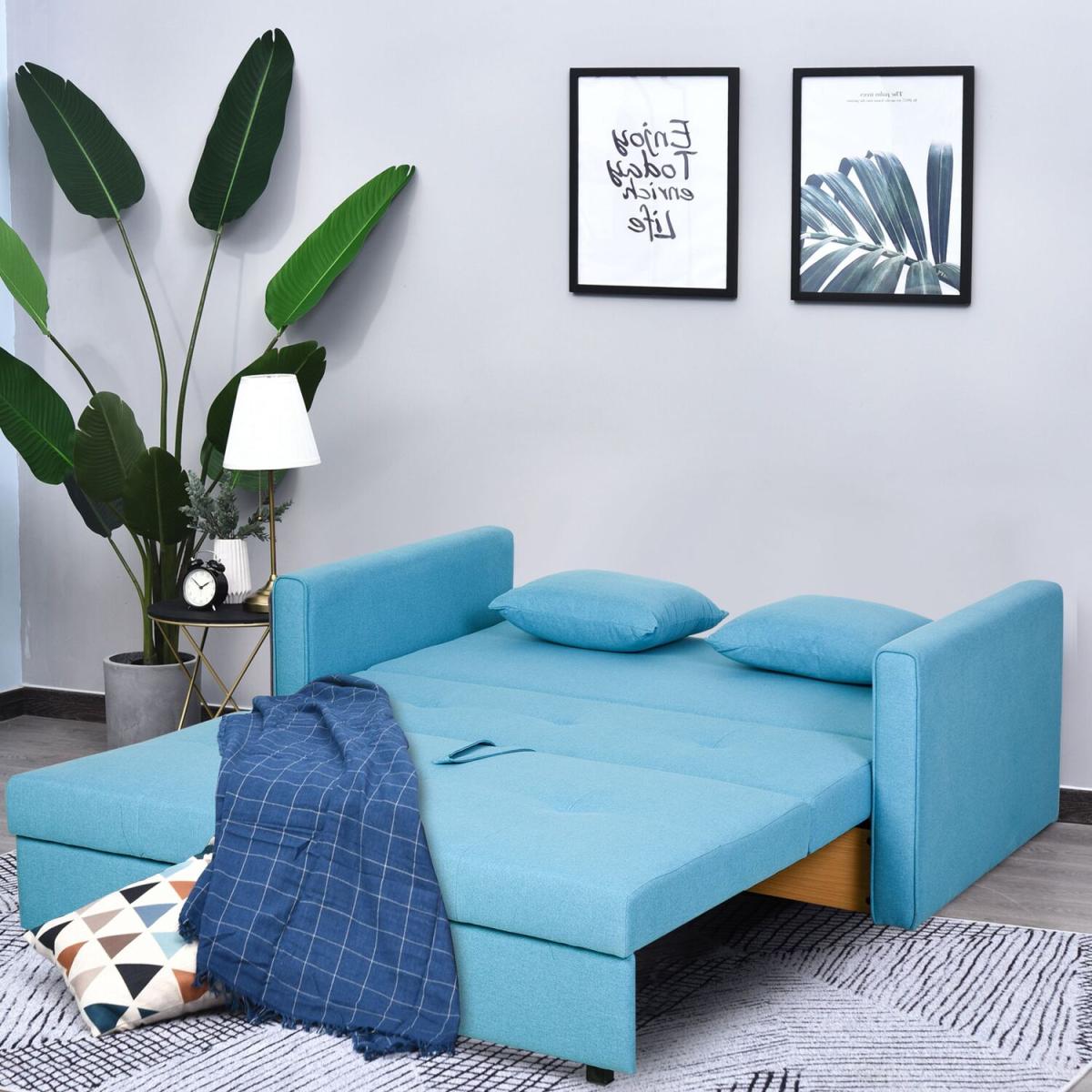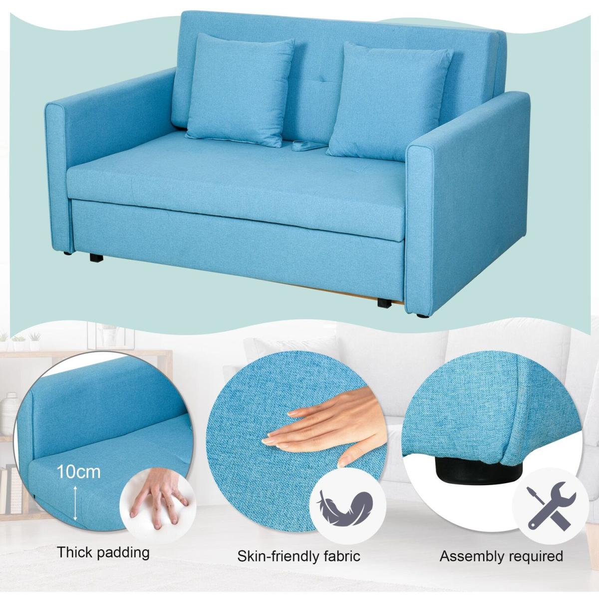This wonderful sofa bed no less. Finished in blue which allows itself to effortlessly welcome itself into your home, it is built into a sturdy and durable 152cm wide design, with a solid wood frame that can hold up to 200kg over the two seats, with 10cm thick sponge for comfort and support as you rewind. As well as converting to a sofa bed, the seat lifts up to reveal storage space, making it ideal for homes lacking on space, as well as being the perfect place to hold any bedding needed for your guests. Wrapped in polycotton for easy maintenance, it is finished with two removable cushions and feet to keep it level whilst protecting your floor.