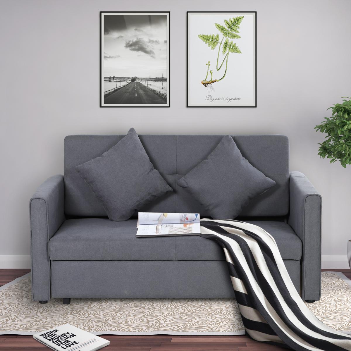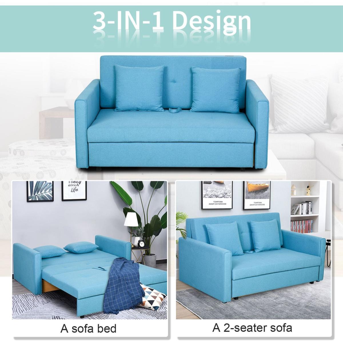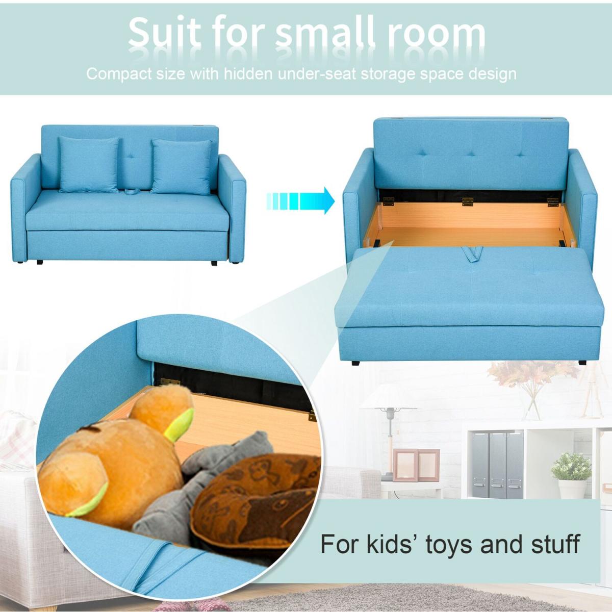 This wonderful sofa bed no less. Finished in blue which allows itself to effortlessly welcome itself into your home, it is built into a sturdy and durable 152cm wide design, with a solid wood frame that can hold up to 200kg over the two seats, with 10cm thick sponge for comfort and support as you rewind. As well as converting to a sofa bed, the seat lifts up to reveal storage space, making it ideal for homes lacking on space, as well as being the perfect place to hold any bedding needed for your guests. Wrapped in polycotton for easy maintenance, it is finished with two removable cushions and feet to keep it level whilst protecting your floor.