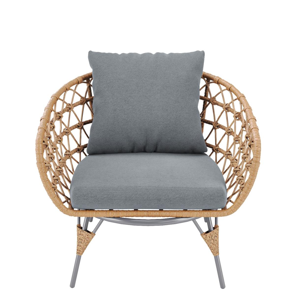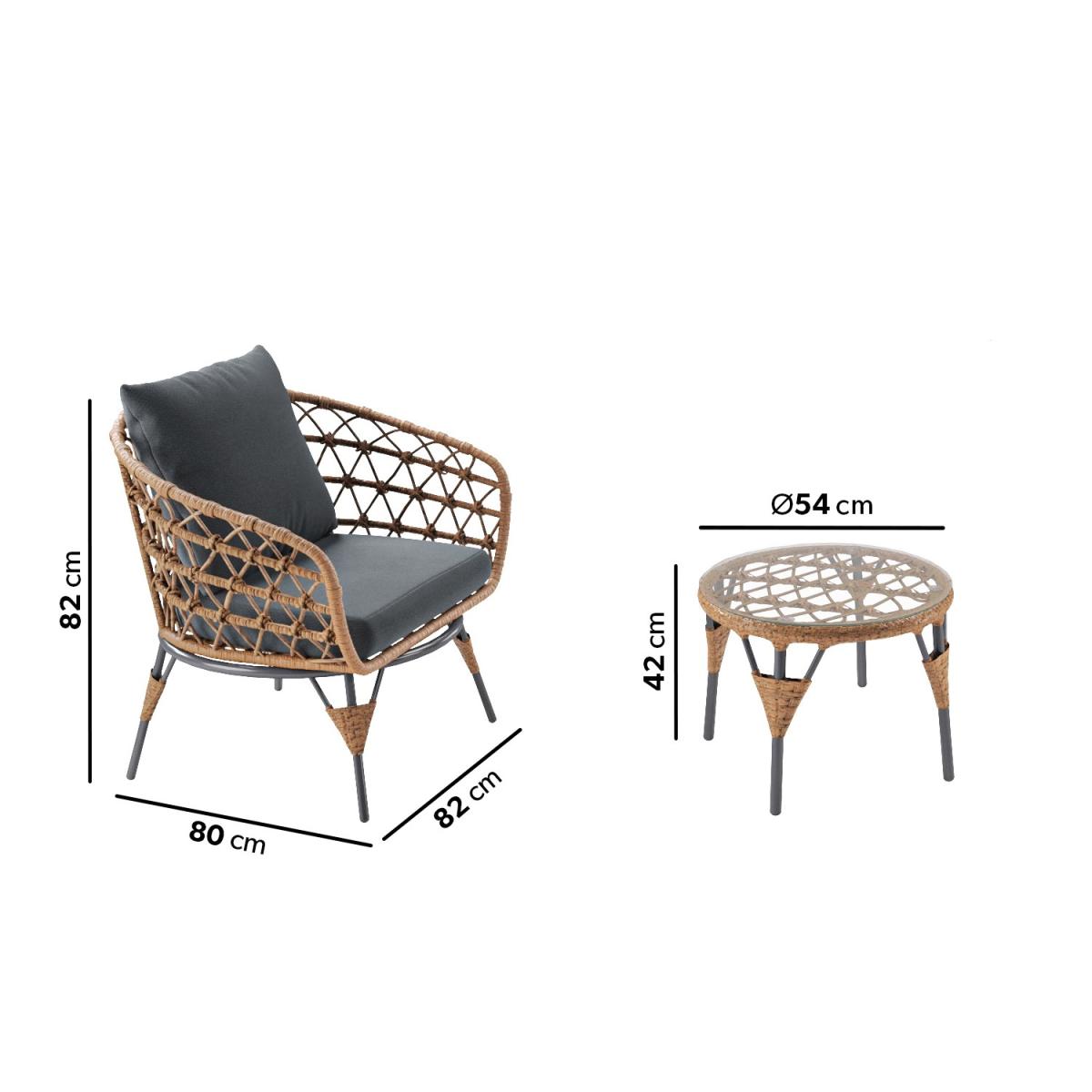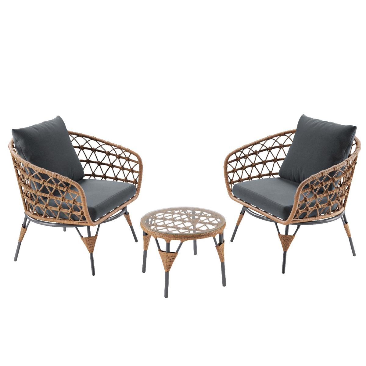This on-trend bistro set makes a great addition to any outdoor space or conservatory; it's also the perfect size for a balcony. It has been crafted from wicker woven and wrapped around sturdy iron frames to create the chair backs, armrests, and table. This outdoor bistro set has a striking warm wicker and stone-grey finish. Enhance the life of your garden furniture- This product has been designed to be used outdoors. To make the most of your furniture, we recommend that you store it indoors, move it in a sheltered position or protect it by covering it up* in bad weather and over the winter period. Why not invest in one of our garden stores to keep upholstery (such as cushions) dry, and to prevent mould or mildew forming. *Did you know we now have our own range of garden covers, consisting of 4 different sizes.