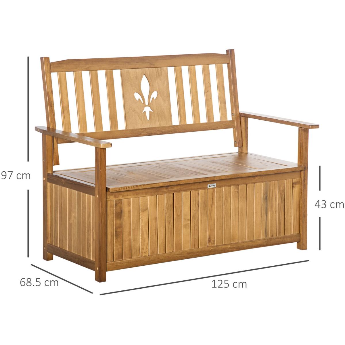Sublime summers, kept extra neat and tidy with this two-seater storage bench from Outsunny. The convenient storage compartment underneath the seat is ideal for hiding away toys, gardening tools, blankets and more. so discreet only you'll know of the space. Crafted from poplar wood, this bench is naturally tough and suitable for outdoor use - with a varnish coating for extra protection. Complete with high back for support, you'll love spending hours on this piece.