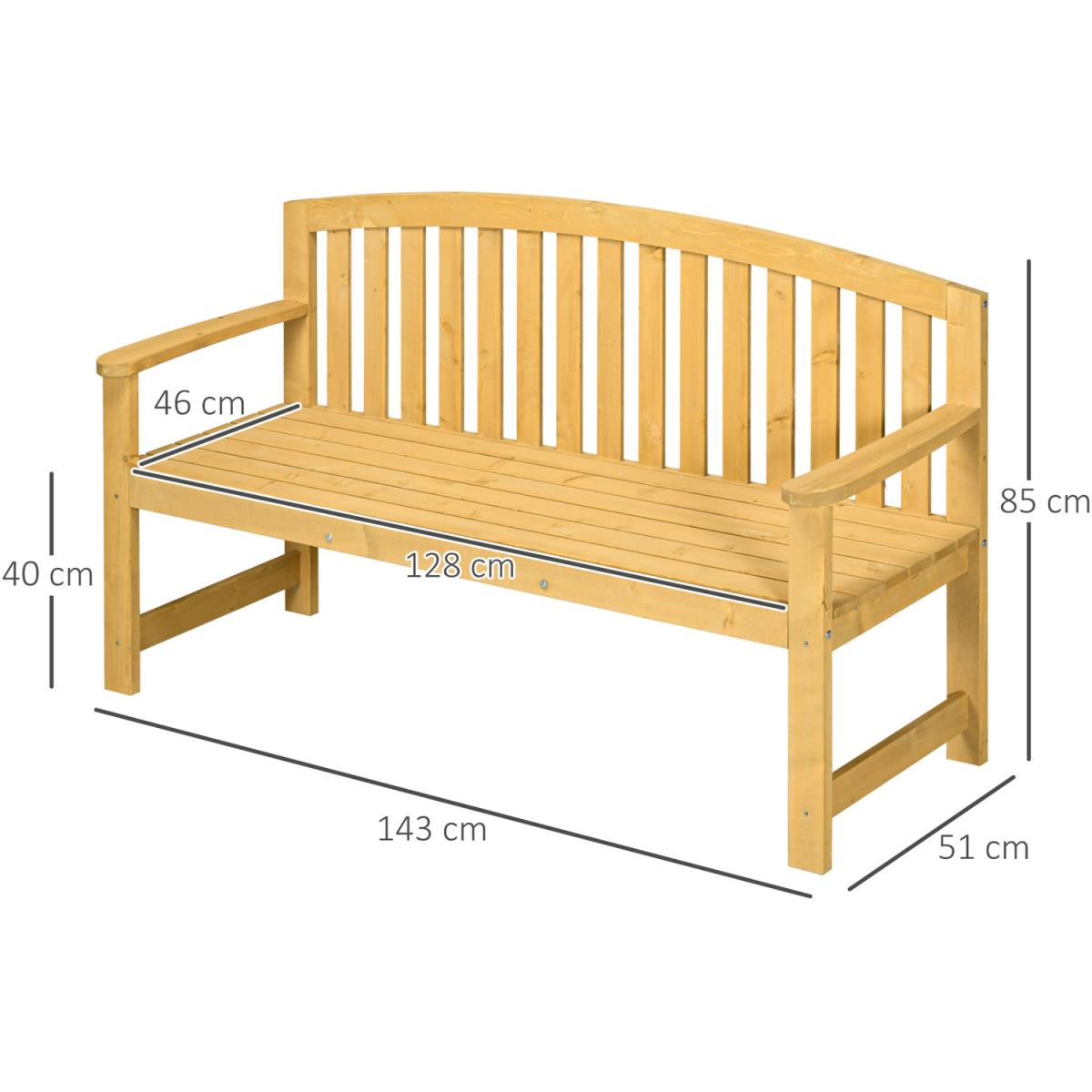 Bring understated beauty into your garden and beyond, with this Outsunny bench. Made from fir wood, it is crafted into a spacious two-seater design, ensuring there is plenty of room to sit with company. The slatted back and seat prevents water building up, with a tall back and fixed armrests for support. Finished with a lick of protective varnish. Enhanced comfort Choose an Outsunny cushioned seat.