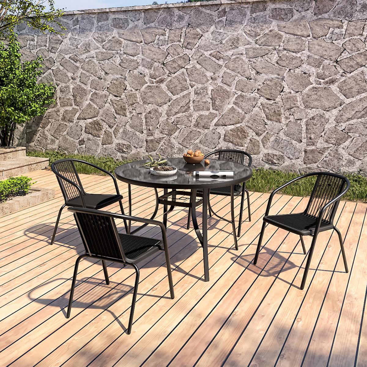 The 2 Seaters Garden Bistro set in black with a round table offers a sleek, minimalist look that works well in both contemporary and traditional garden spaces. Its compact size makes it perfect for smaller patios or balcony gardens, and the black finish adds a touch of sophistication, pairing easily with neutral or colourful outdoor cushions and accessories. For styling tips, consider layering with soft textiles like outdoor cushions or throws to create a cosy vibe, or anchoring the set with a versatile outdoor rug. It’s versatile enough to complement a range of decor styles, from modern urban gardens to rustic courtyards, making it a practical and stylish choice for outdoor dining or casual coffee breaks.