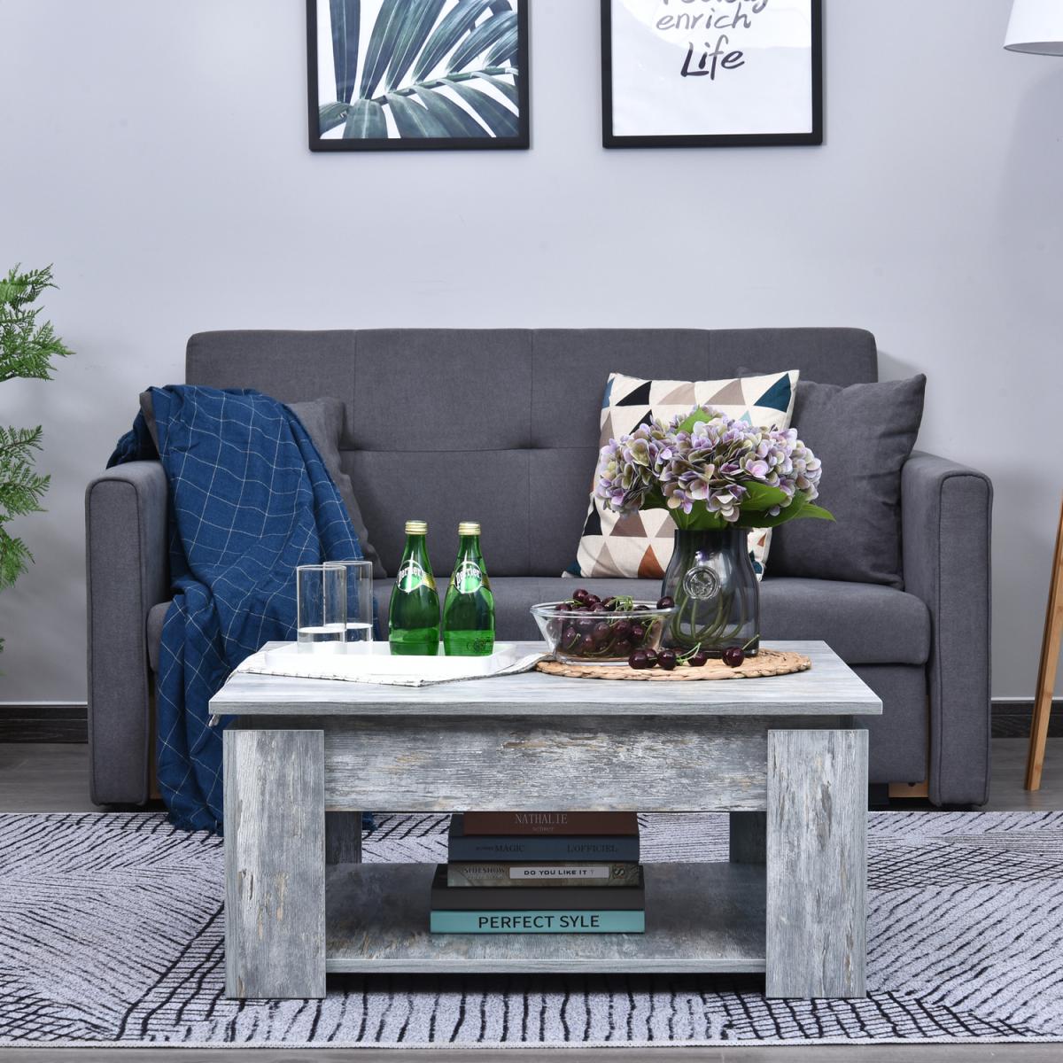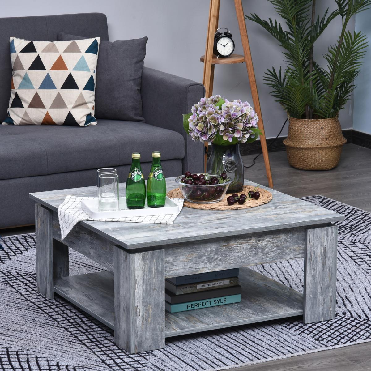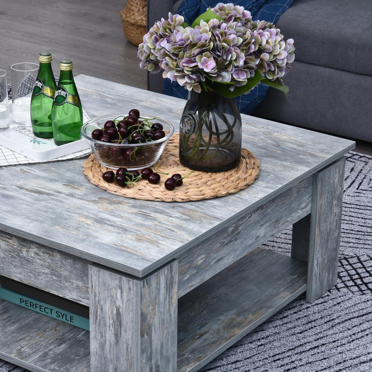 Enjoy relaxing indoor time with this gorgeous faux wood living room coffee table from HOMCOM. Constructed from solid particleboard with the treated finish, this table is scratch and stain-resistant and can hold up to 60kg. The 2 tier design offers additional storage space to hold books, magazines, movies, games, food, drinks, and more. Featuring a beautiful wood grain finish, this versatile coffee table is sure to be a stylish addition to any room of the home.