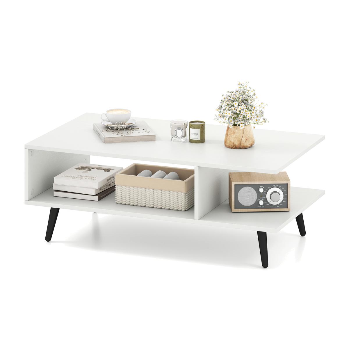 Transform your living room into an epitome of style and functionality with this stunning 2-tier coffee table! Not just a place to drop your cups, its spacious top and additional compartments provide a savvy solution to keep clutter at bay. Store magazines, organize snacks, or hide those pesky remote controls - all in style. Crafted with robust materials and standing on tapered metal legs capable of holding up to 80kg, it boasts excellent endurance and stability. Cleanup is a breeze with its smooth, easy-wipe surface and handy under-table clearance.