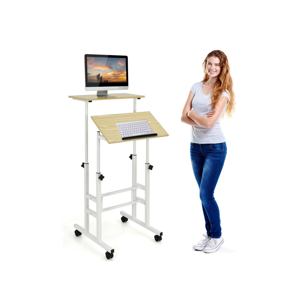 2-Tier Adjustable Standing Desk Rolling Computer Workstation - Natural