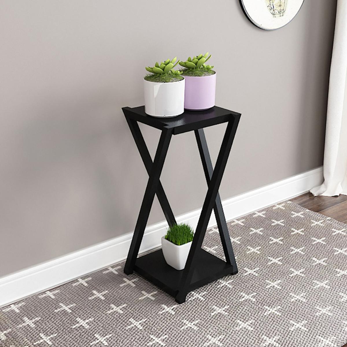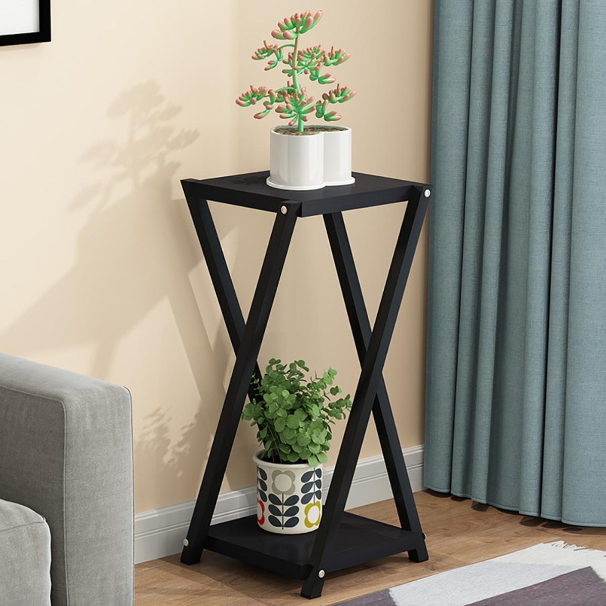 2 Tier Black Metal Plant Stand for Garden Corner Display - Black