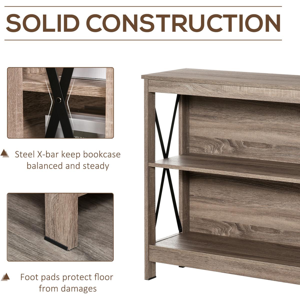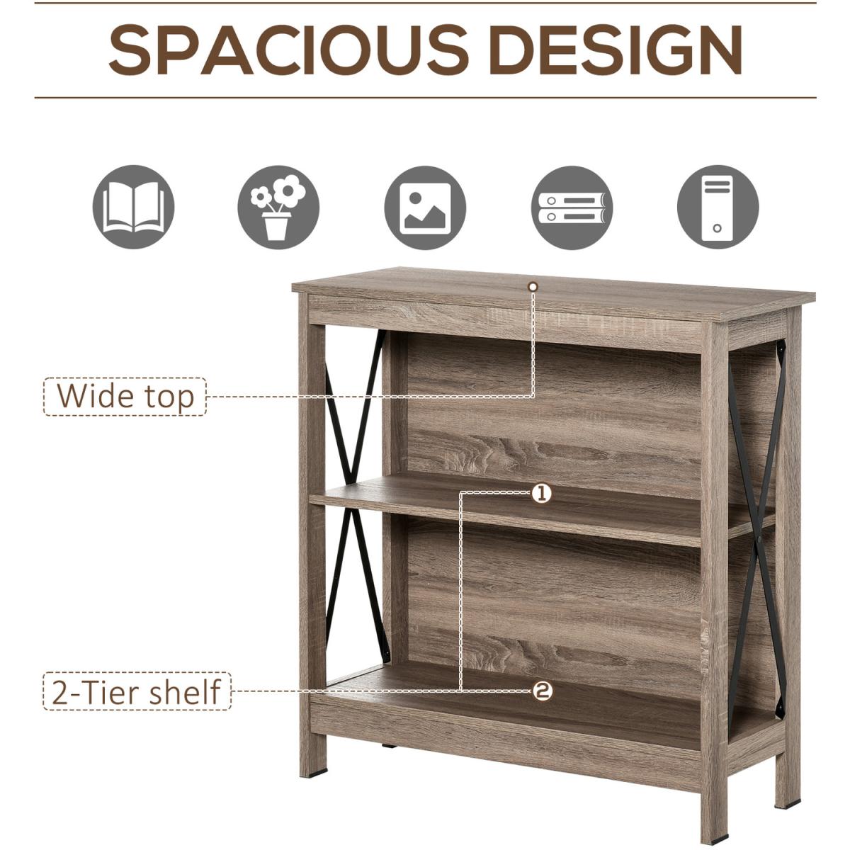 2-Tier Bookcase Display Shelf Unit With Steel Bar - Light Oak