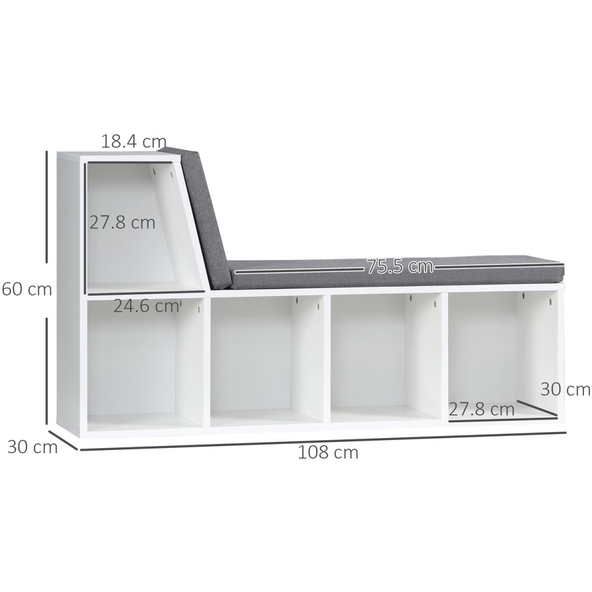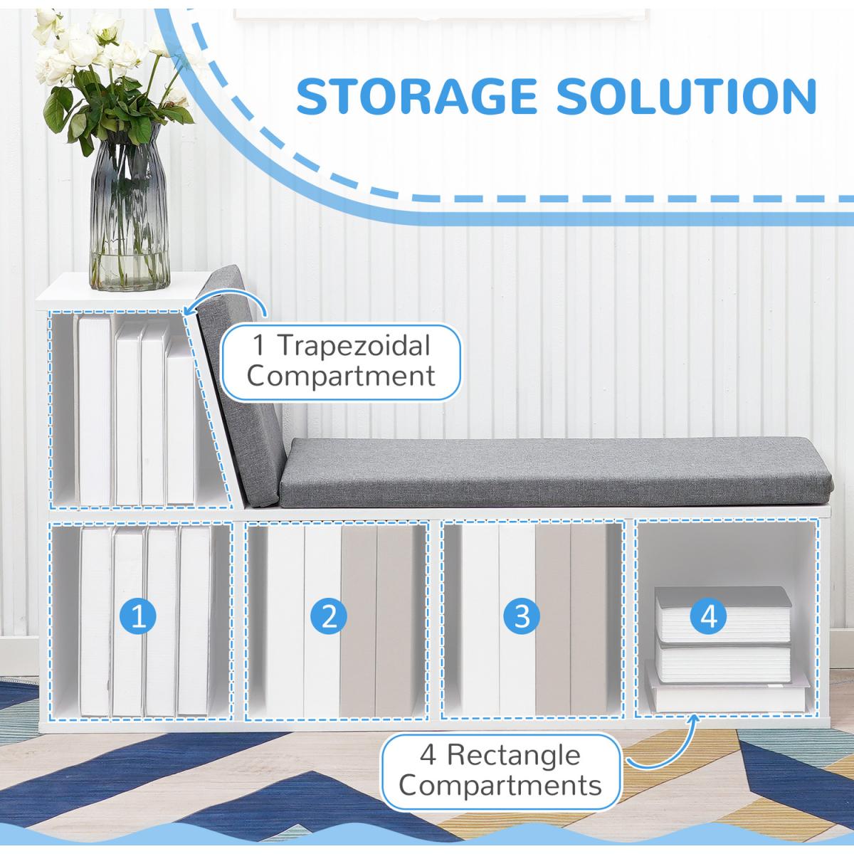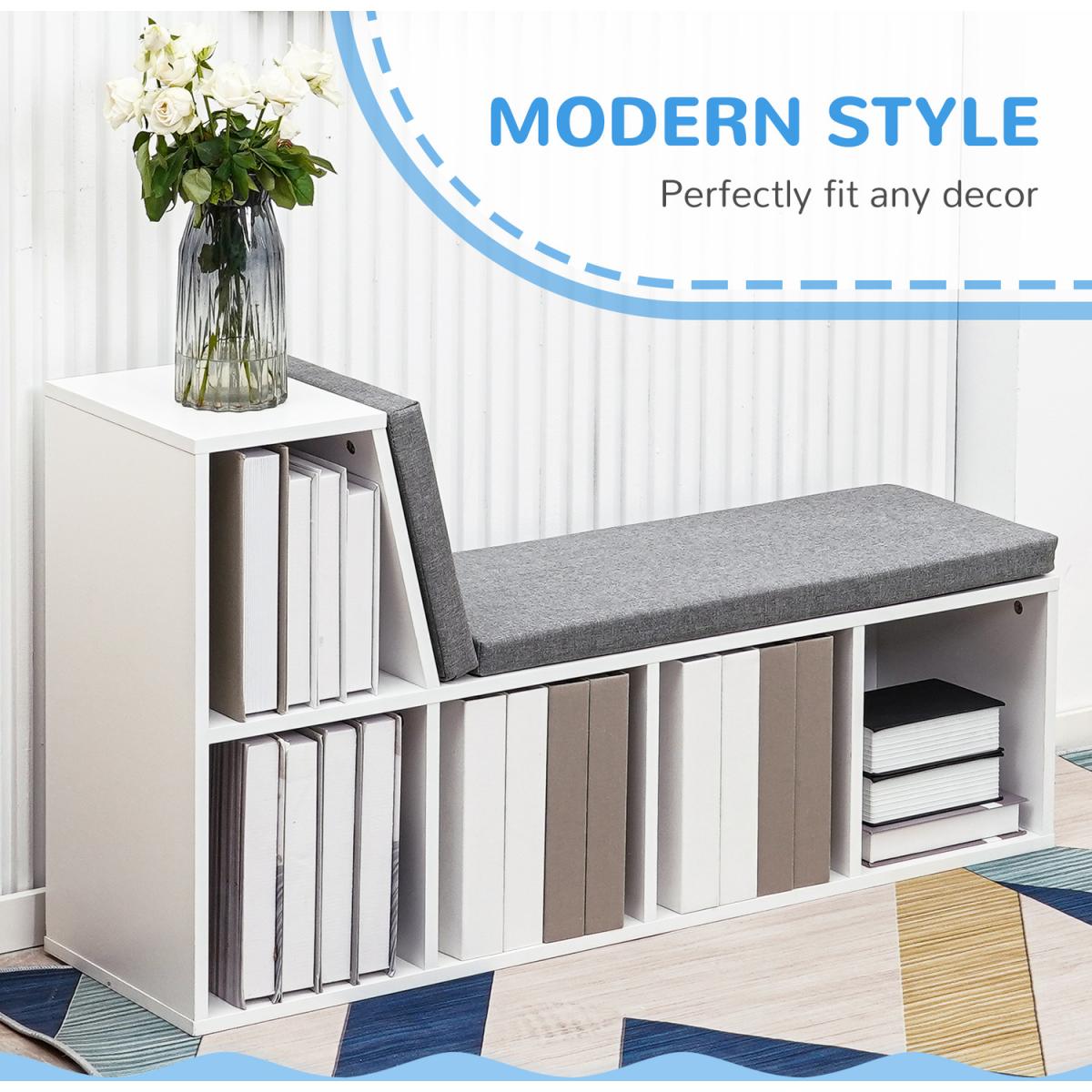 Functional and modern, this small bookshelf from HOMCOM is the perfect piece for most spaces and styles. Its large storage design gives convenient and independent spaces for different items, keeping your room neat and clean. With the special design, you can sit down and lean there to reading with comfortable cushions. In addition, the white bookshelf is ideal for the living room, bedroom, study room, and office. Don't hesitate to take this contemporary bookshelf home!