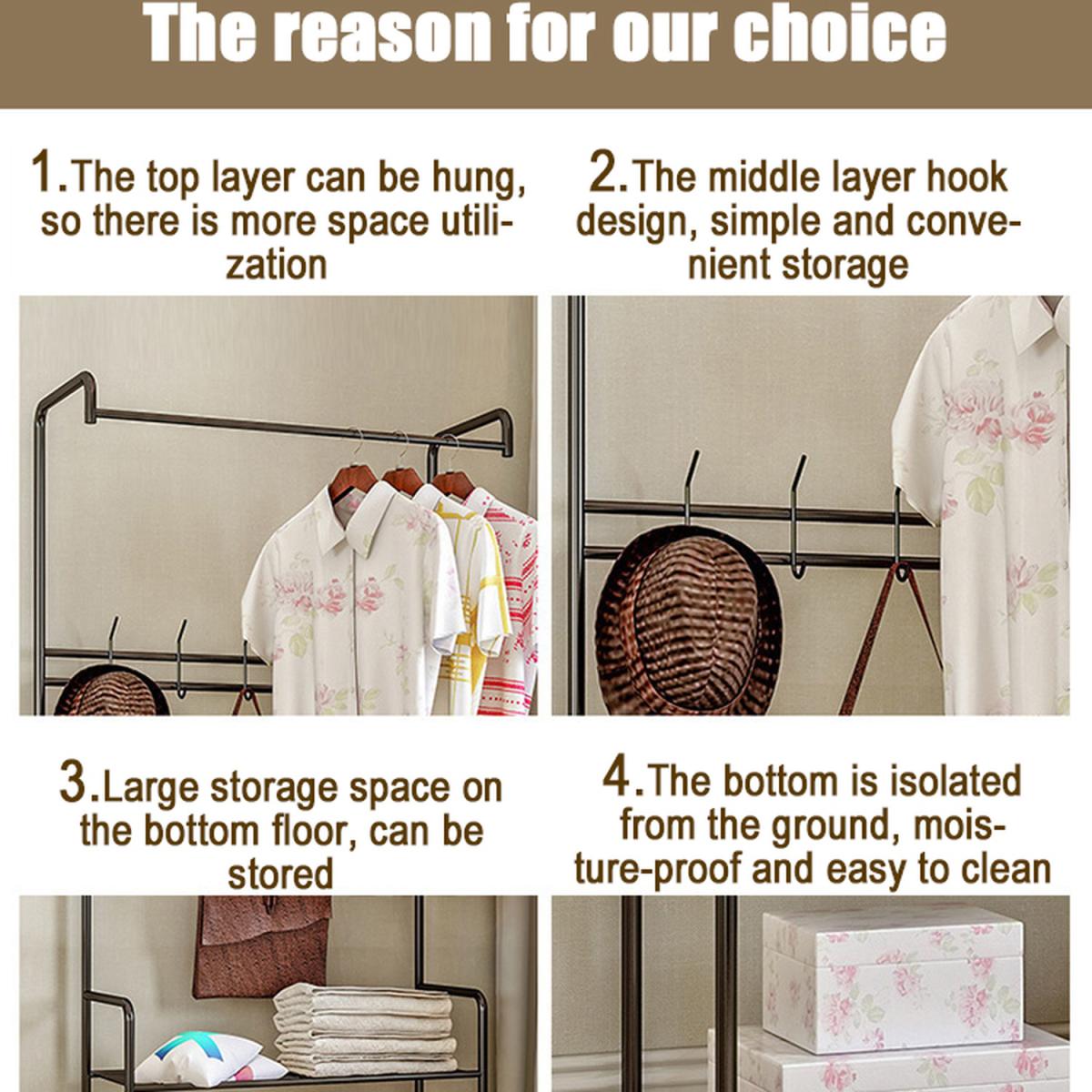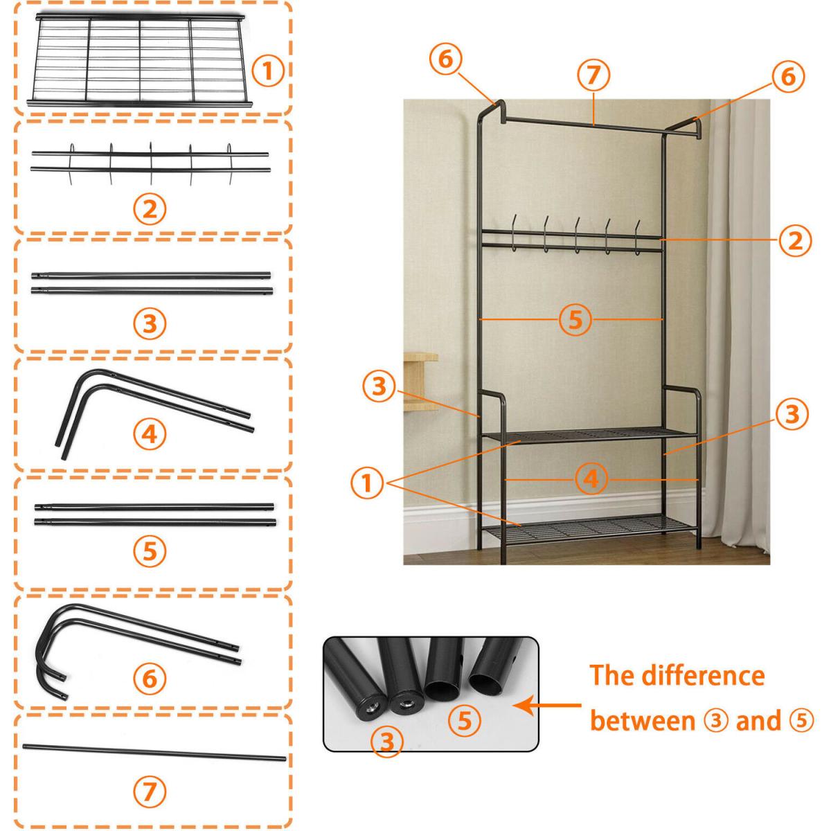 De clutter your home with this 5-hook storage rack,Store shoes, coats and more,Sturdy metal frame,Easy to put together and dismantle,A great multi function coat and shoe rack for your home or office