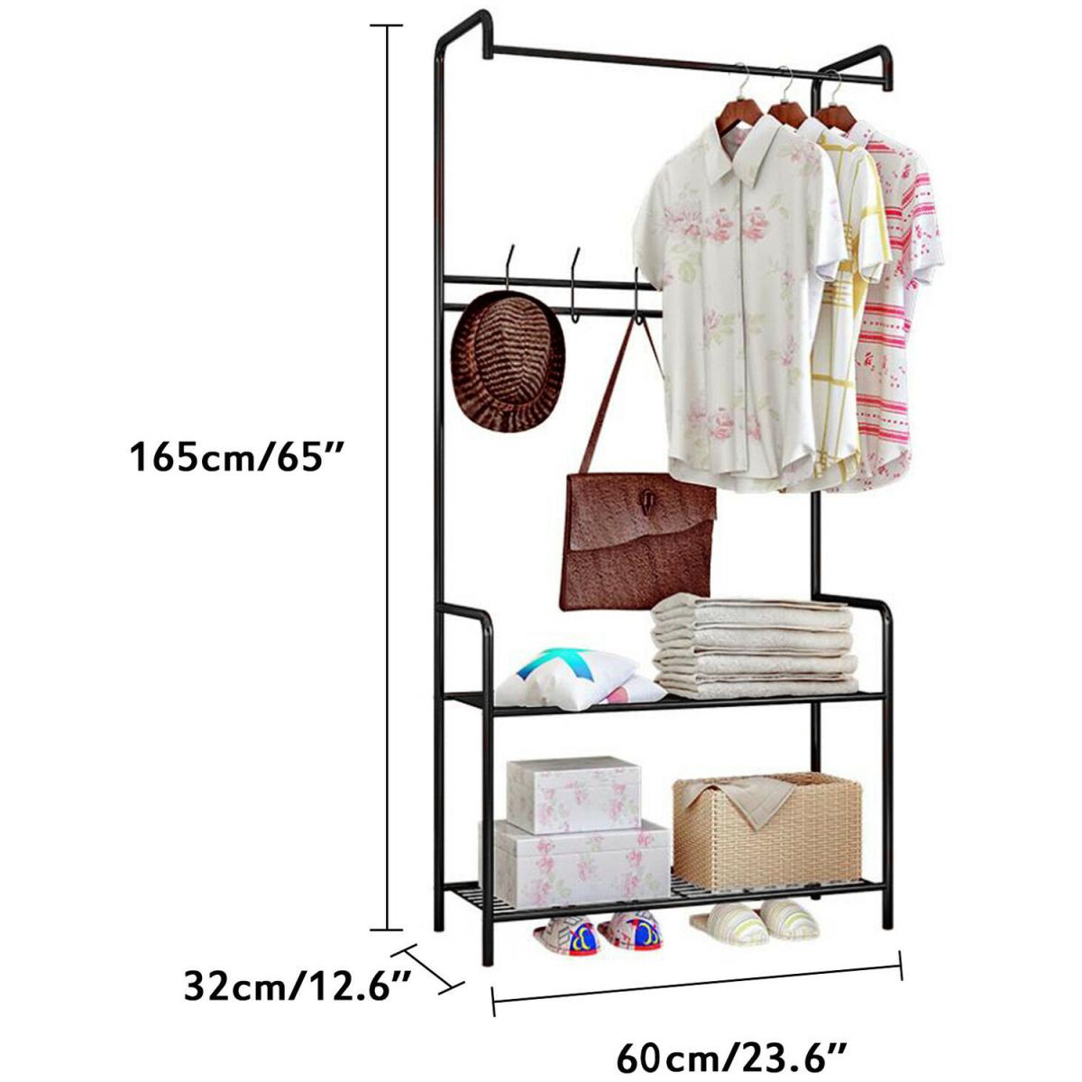 2 Tier Clothes Rail Hanging Rack Hat Coat Rack-Black - Black