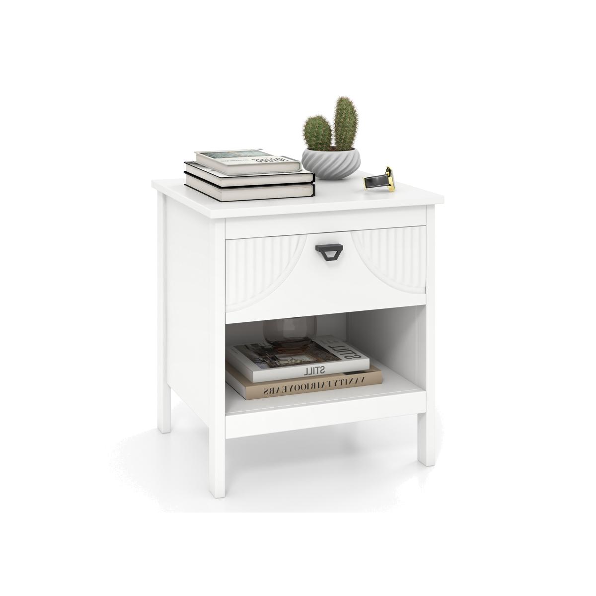 Enhance your living space with this side table boasting an elegant design that effortlessly complements various decoration styles. The faux cutout design on the drawer fronts adds a touch of class to the overall aesthetic. Enjoy the convenience of private drawers and open shelves, providing ample storage space for personal items, books, plants, and decorative pieces. Details of the nightstand showcase sophisticated workmanship: the stable structure features non-slip foot pads to prevent scratches and sliding, along with an anti-toppling device for added safety.