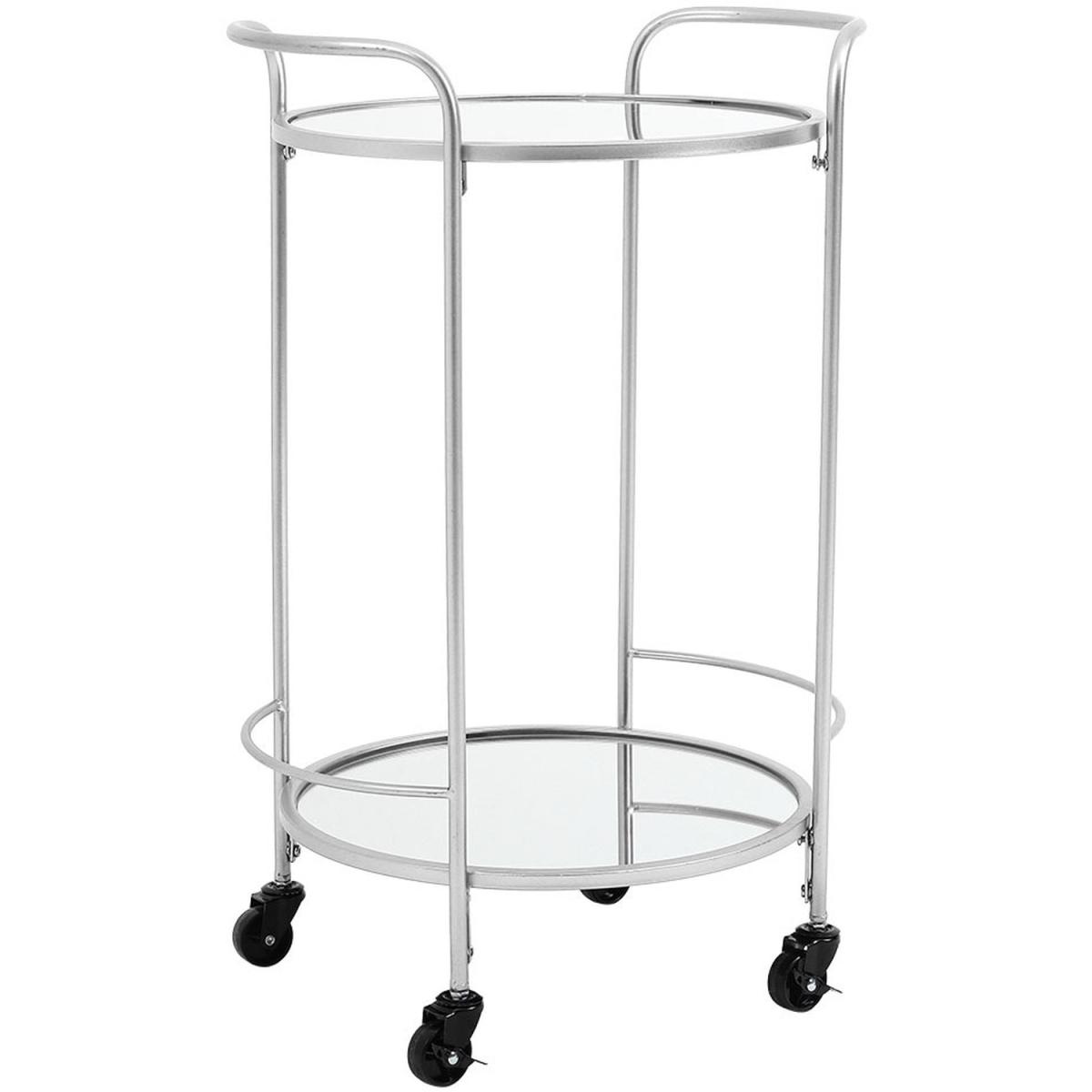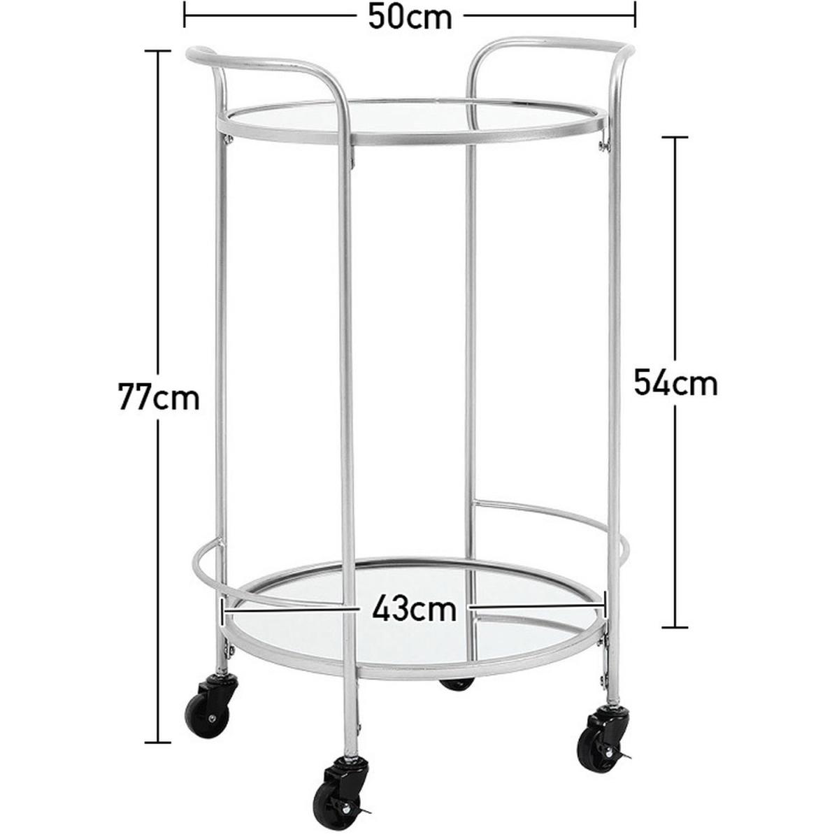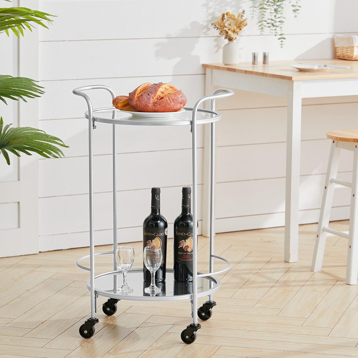 2 Tier Glass Wine Rack Trolley Metal Painted Frame Display - Silver / 47cm