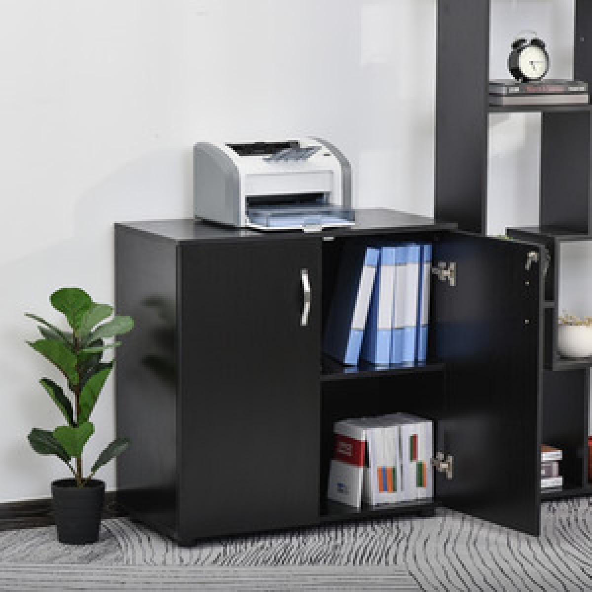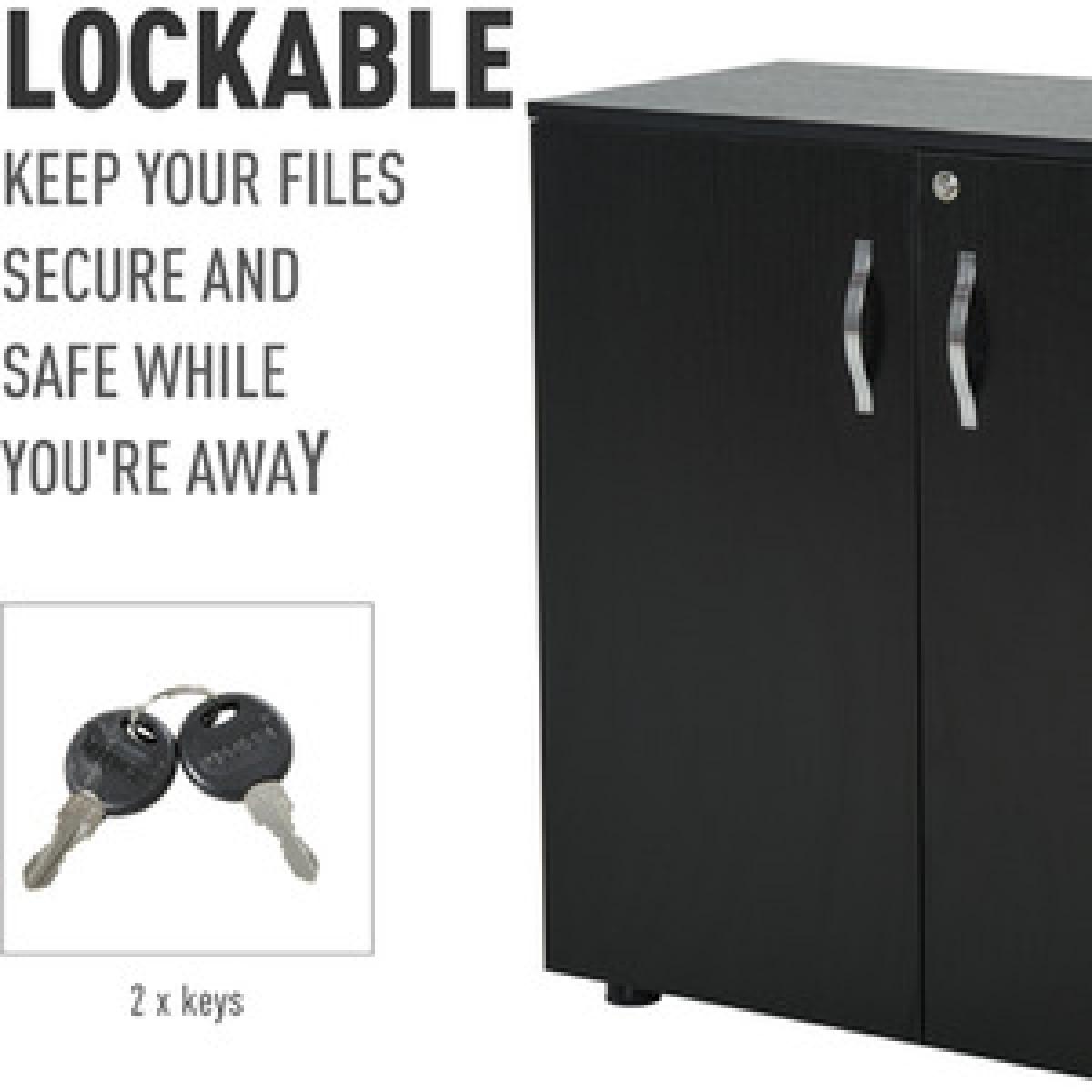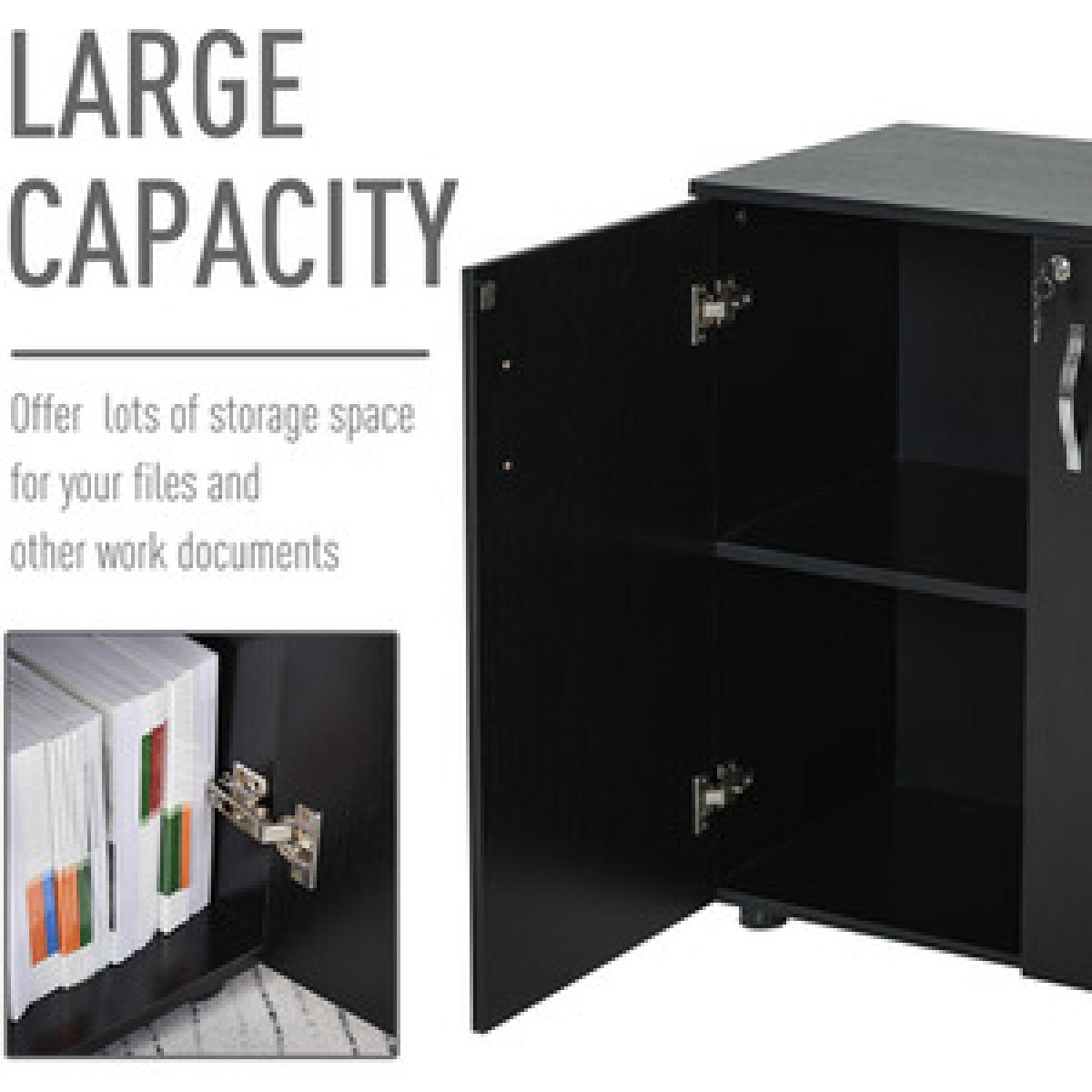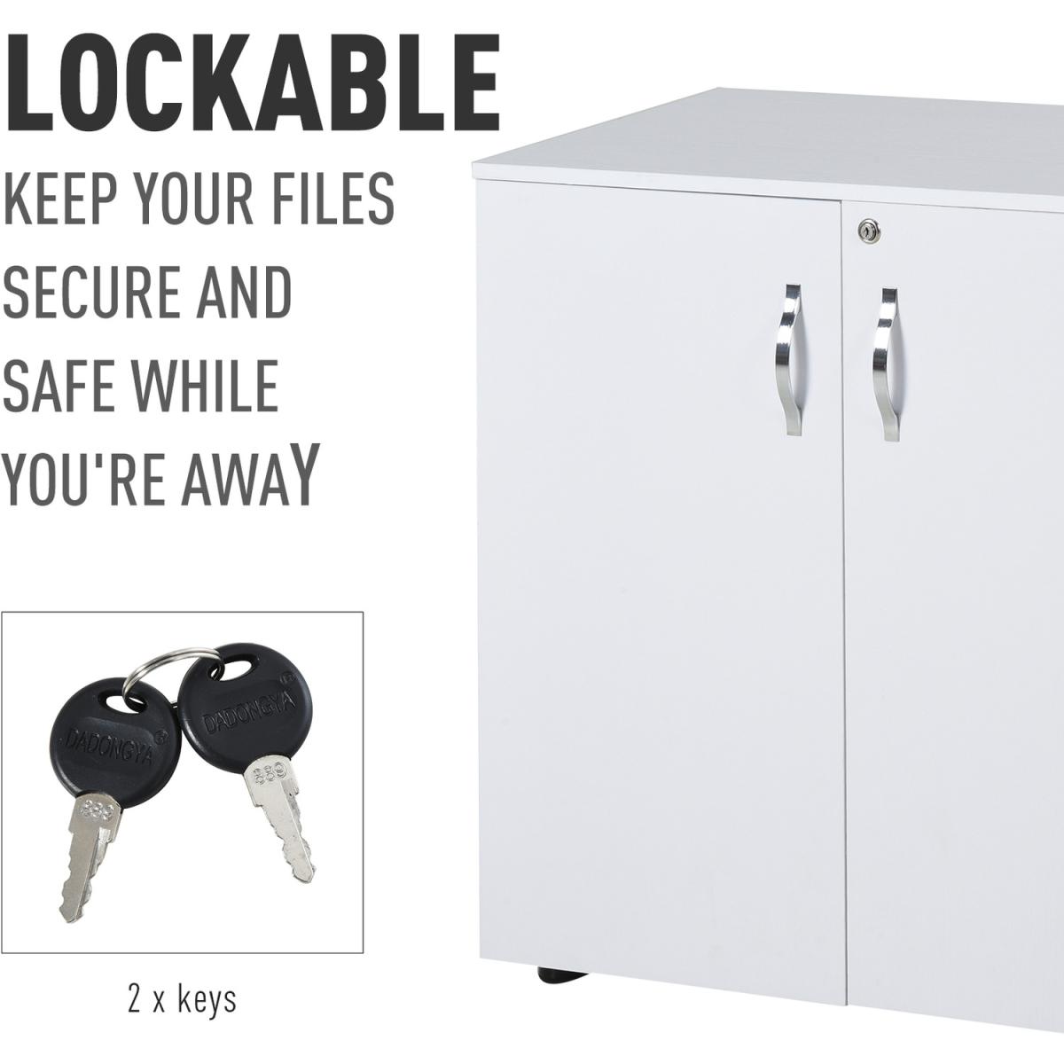 Keep the office organised and the area looking beautiful with this white storage cabinet from HOMCOM. With two hinged doors for easy access, inside a longline shelf sits to create two tiers for the organisation of your files and papers. Made from particleboard, this piece is tough and durable for everyday use. It's finished with feet to protect your floor and a lock for security.