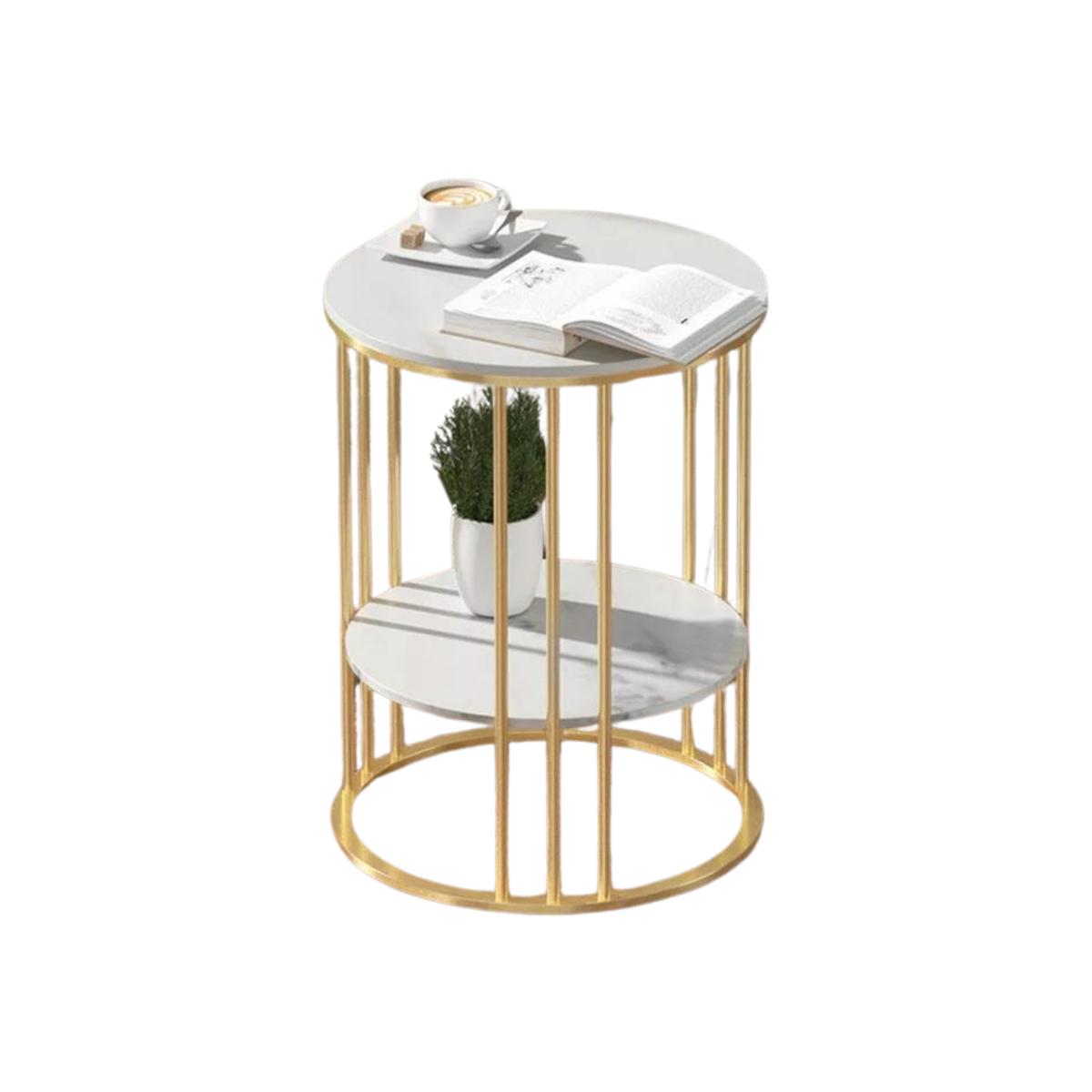 The white marble-patterned sintered stone side table is the perfect choice for a touch of elegance and simplicity. With its stunning marble texture and golden frame design, this table serves as an attractive focal point, adding a clean, minimalist aesthetic to your living room, balcony, or bedroom. Manufactured under high pressure and extreme heat, sintered stone is incredibly tough, resistant to heat, cold, scratches, chipping, and stains. It offers greater strength, cleanliness, and durability compared to glass and MDF, making it an excellent choice for everyday use. The uniquely-veined sintered stone with a high luster and crystal-like marble appearance reflects light, making your space feel brighter and more spacious. Each tier can hold up to 20kg, making it ideal for placing a lamp, a cup of coffee, or your favorite book.