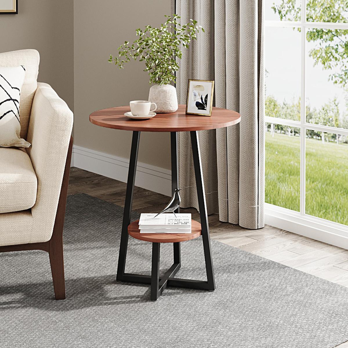 Add warmth and style to your space with this 2-tier side table. The black walnut finish combines with a sleek black metal frame for a modern yet cosy look. The double-layer design provides extra storage for books, decor, or daily essentials. Perfect beside a sofa or in a reading nook, it is both practical and elegant.