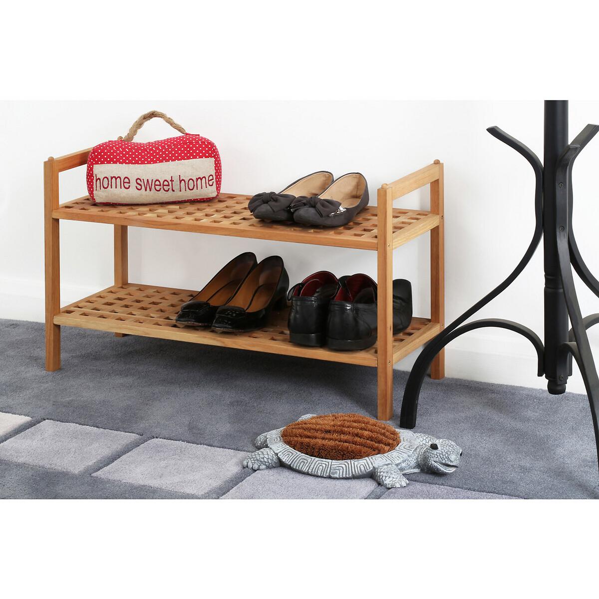 Keep your shoes organised and stored neatly on the walnut wood two tier shoe rack. The modern criss cross design shoe rack is practical, with two tiers for tidying away shoes and keeping floors clear. Made from walnut wood the rack is durable. Product Dimensions H40 x W70 x L27cm. This product will be dispatched by one of our trusted suppliers. You’ll be contacted by their selected courier about your delivery.