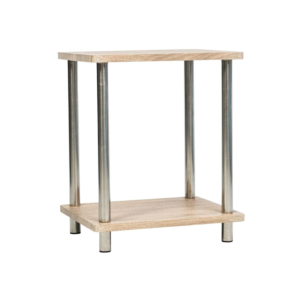 2 Tier Side Table With Stainless Steel Legs Storage Table Coffee Table - Brown