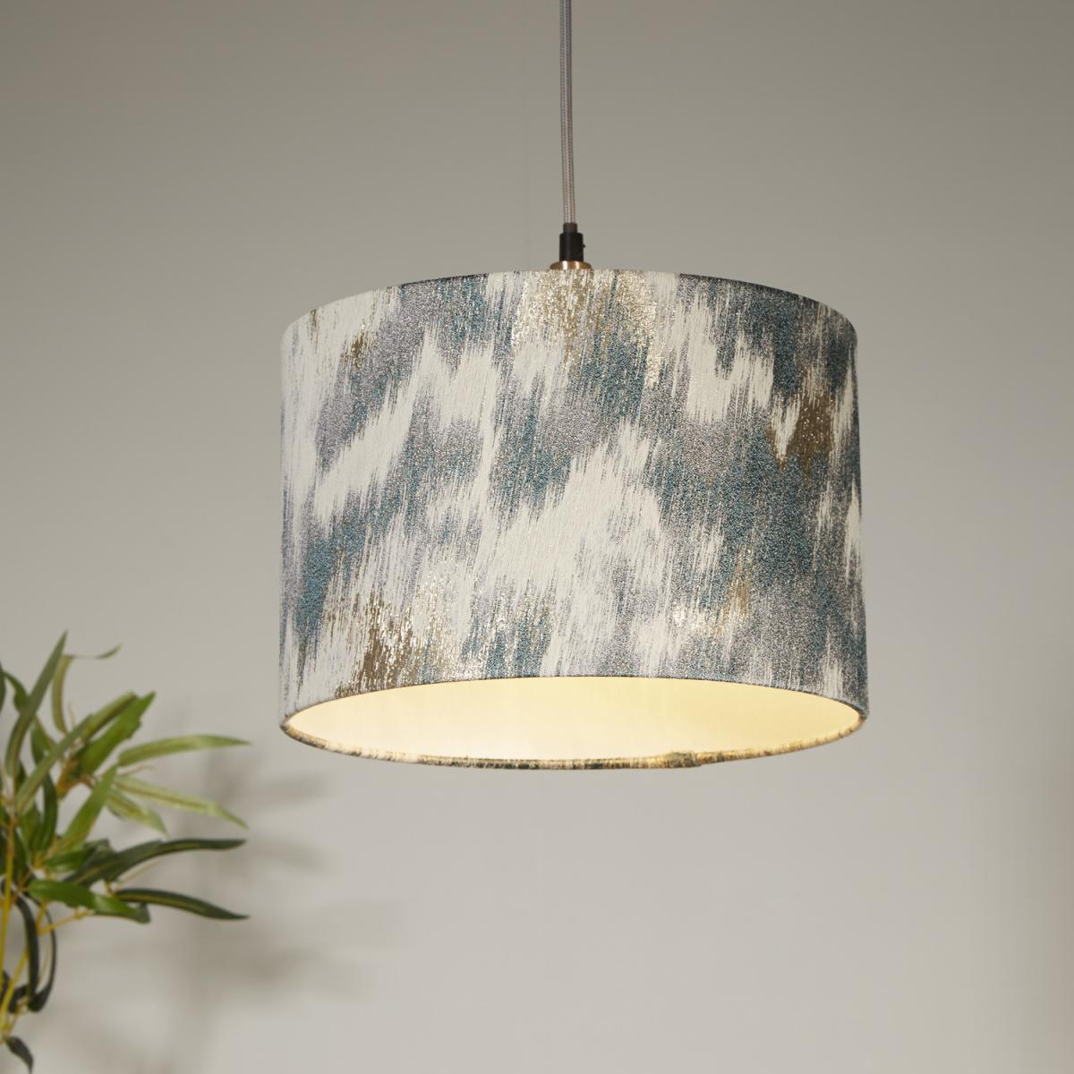 This modern abstract print navy and cream shade is elevated by the use of gold metallic accents, creating a stunning drum shade which will elevate any bedroom, living area or hallway. The 30cm drum shade is designed to be used with existing ceiling suspensions to easily and cost effectively update any room, adding a soft pop of colour and texture.