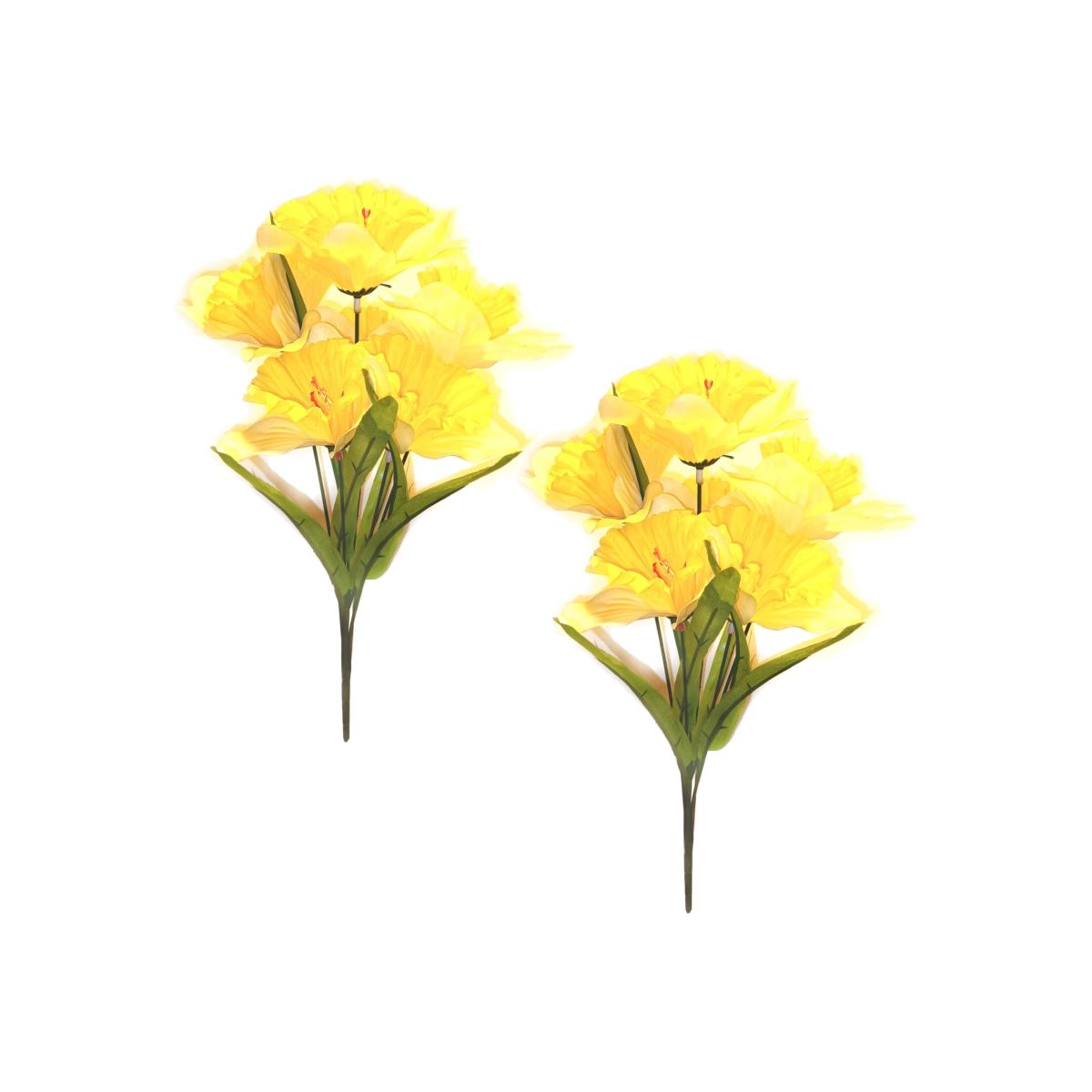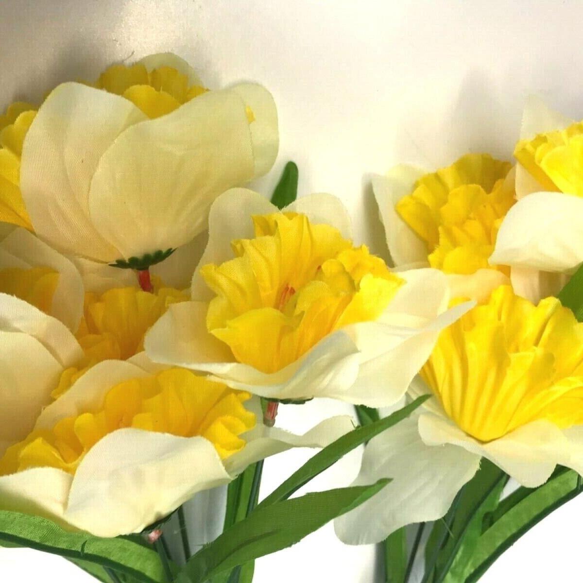 2 x Artificial Faux Daffodil Plants Sprays - Yellow and Cream - Yellow and Cream