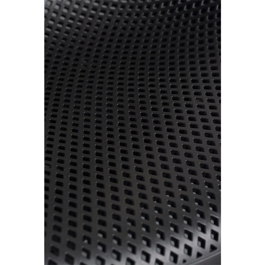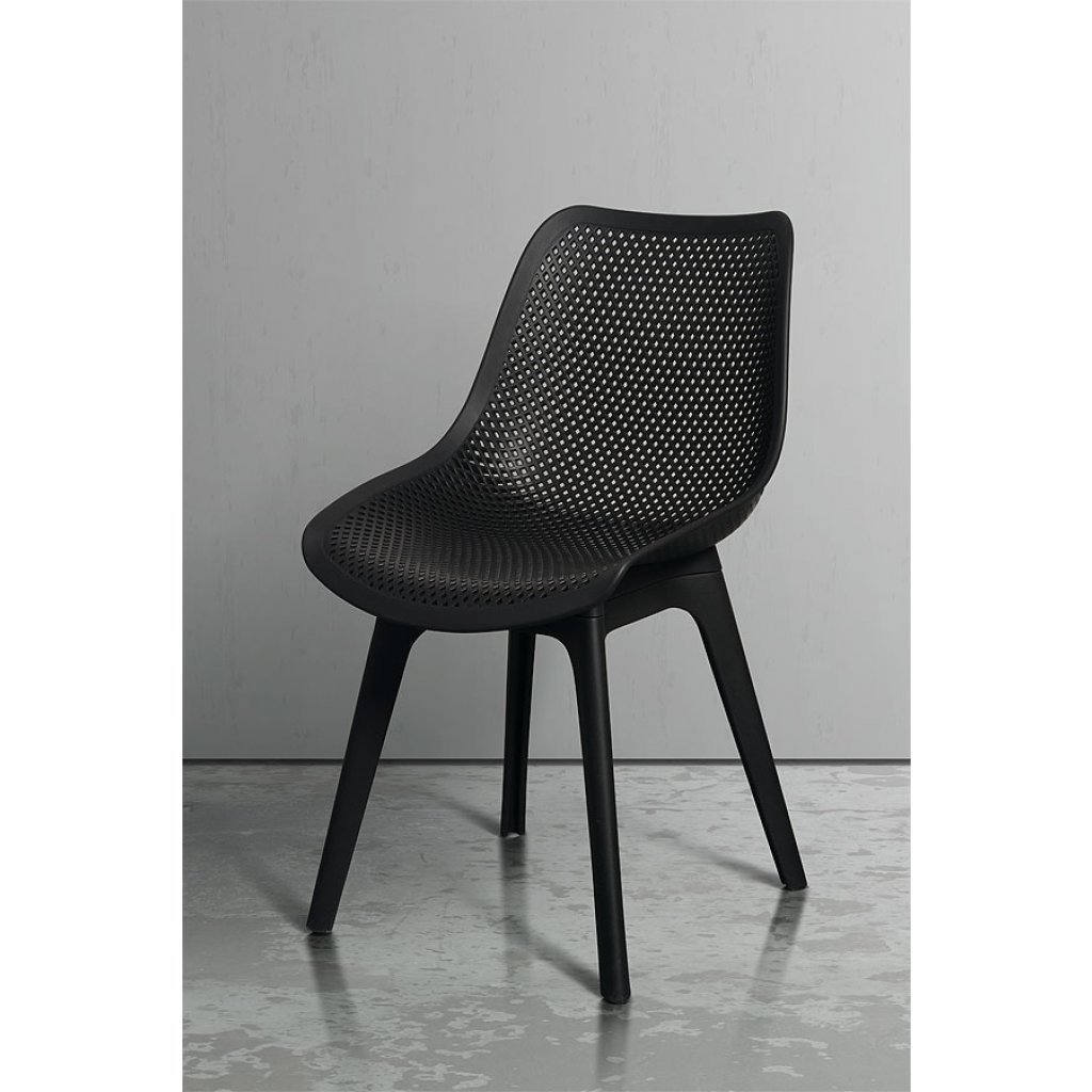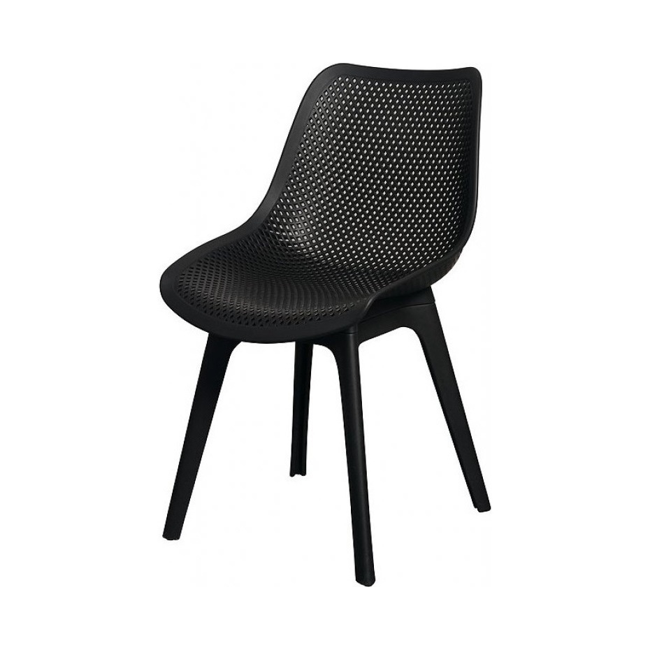 A unique, striking and durable dining chair. Featuring a distinctive mesh design which allows air to circulate and rainwater to drain. This is an extremely strong and rigid chair moulded from tough ABS plastic. Suitable for all weather conditions and may be left outdoors all year round. Simple to clean with a jet spray or hose. can be assembled in five minutes. Also suitable for indoor use.