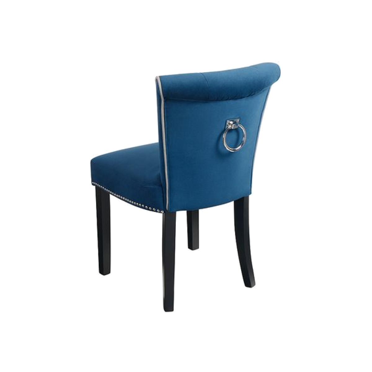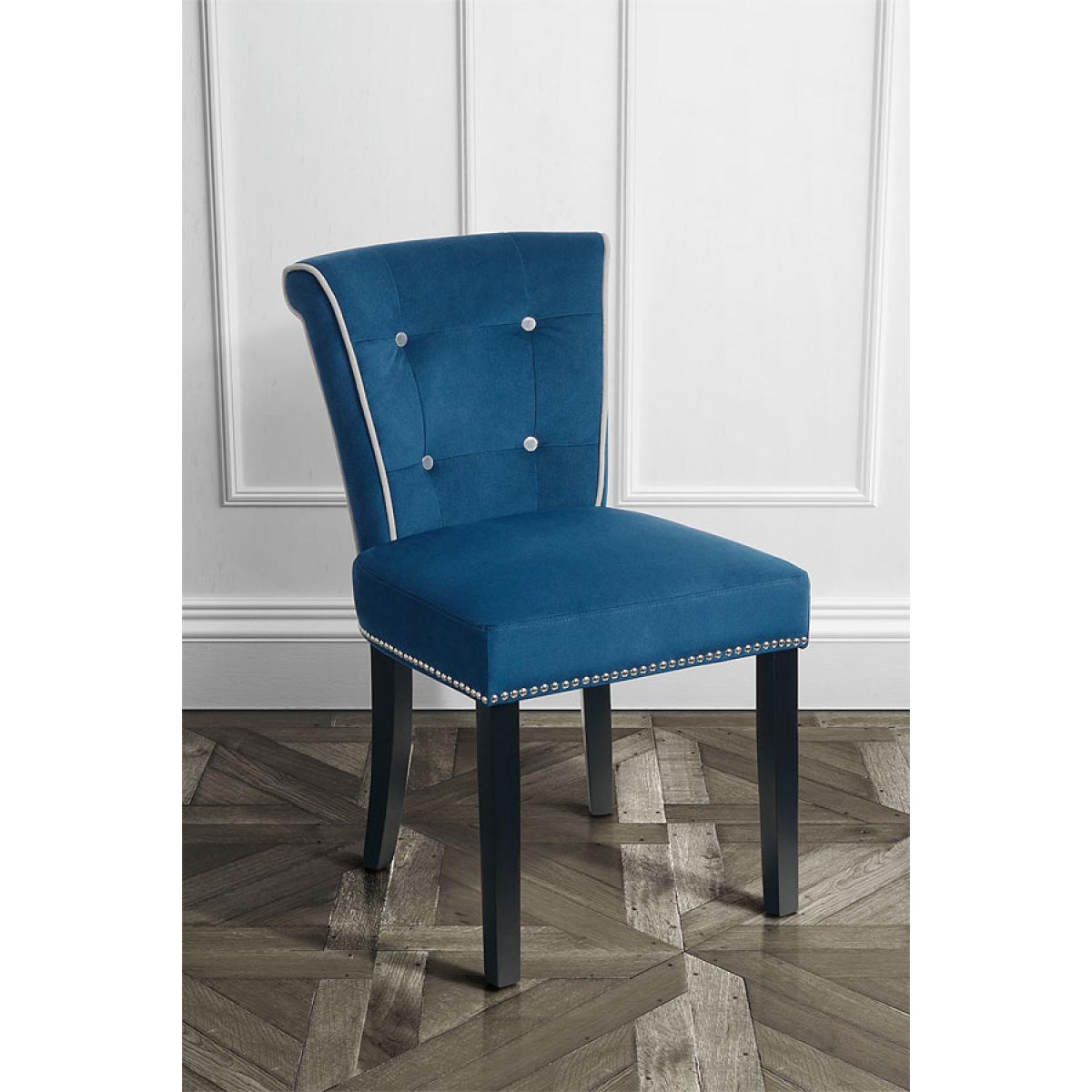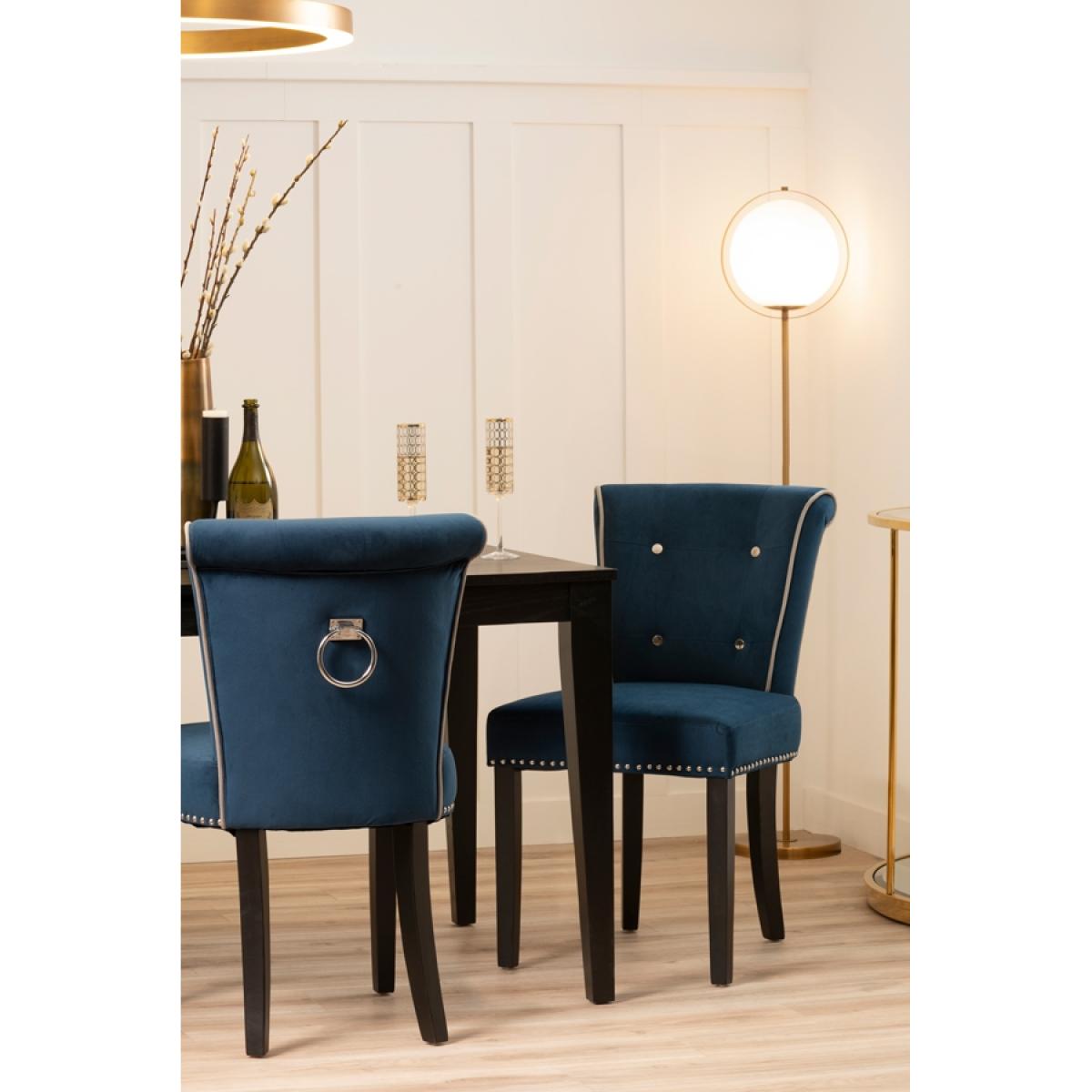 A magnificent, statement dining chair that will add a sophisticated, elegant touch to your interior. Luxurious velvet fabric with contrast piping. Solid ash legs stained black. Feature chrome handle and studs. Handsome chrome upholstery tacks. Assembly required, approximately 5 minutes. Require Part Assembly.