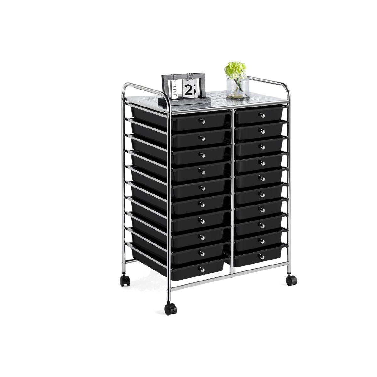This 20-drawer storage trolley is provided with 4 wheels, 2 of which are lockable, ensuring both flexibility and stability. The design of the 20 vertically aligned drawers make full use of limited space, allowing users to store different items separately. Besides, each of the drawers can be removed separately, therefore, you can use it as a simple storage box on your office desks or install it back after filling.