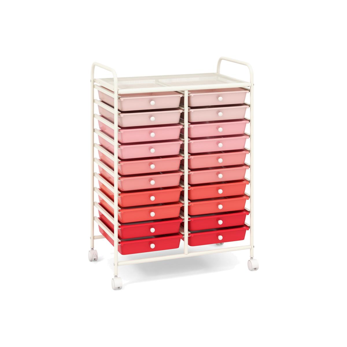 20 Drawers Storage Trolley Mobile Rolling Utility Cart - Pink
