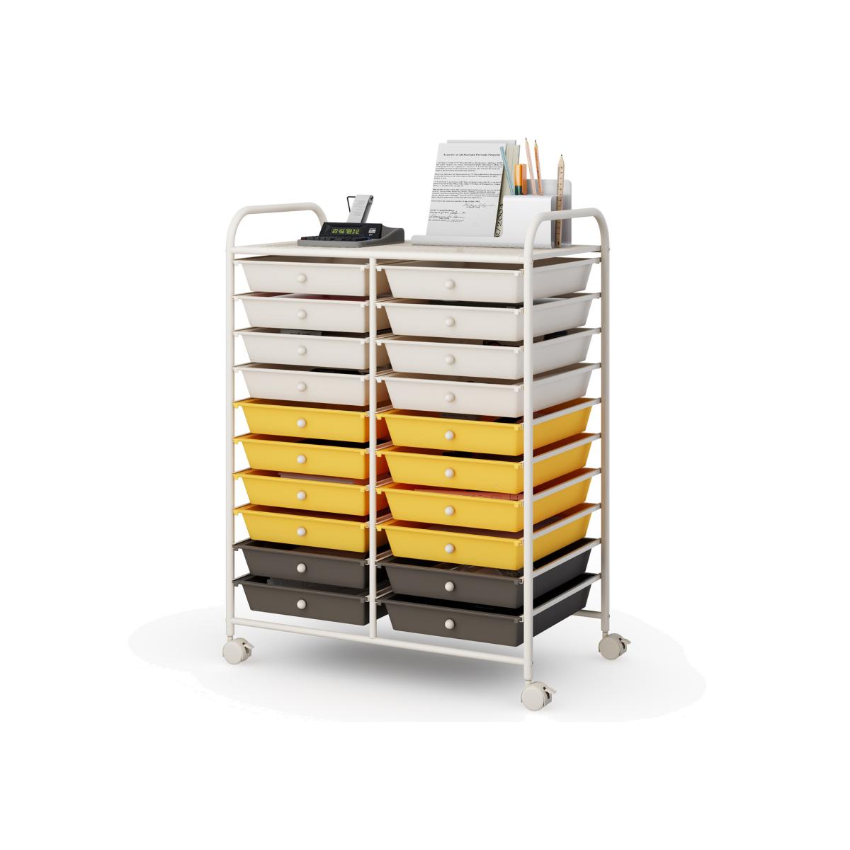 20 Drawers Storage Trolley Mobile Rolling Utility Cart - Yellow