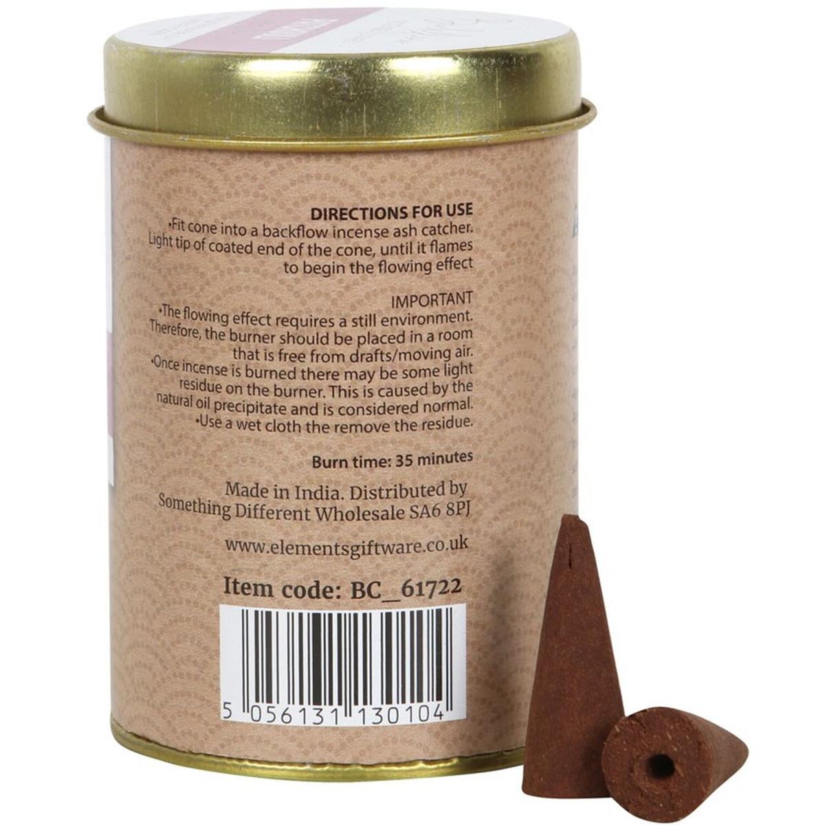 20 backflow incense cones by Elements Home Fragrance. Use in backflow incense burners to create impressive smoke flow displays while fragrancing the home. Approximately 40 minutes burn time per jumbo cone. Handmade in India using traditional techniques. Vegan. Read directions before use. Follow safety guides when using incense cones, do not leave unattended. Keep out of the reach of children and pets.