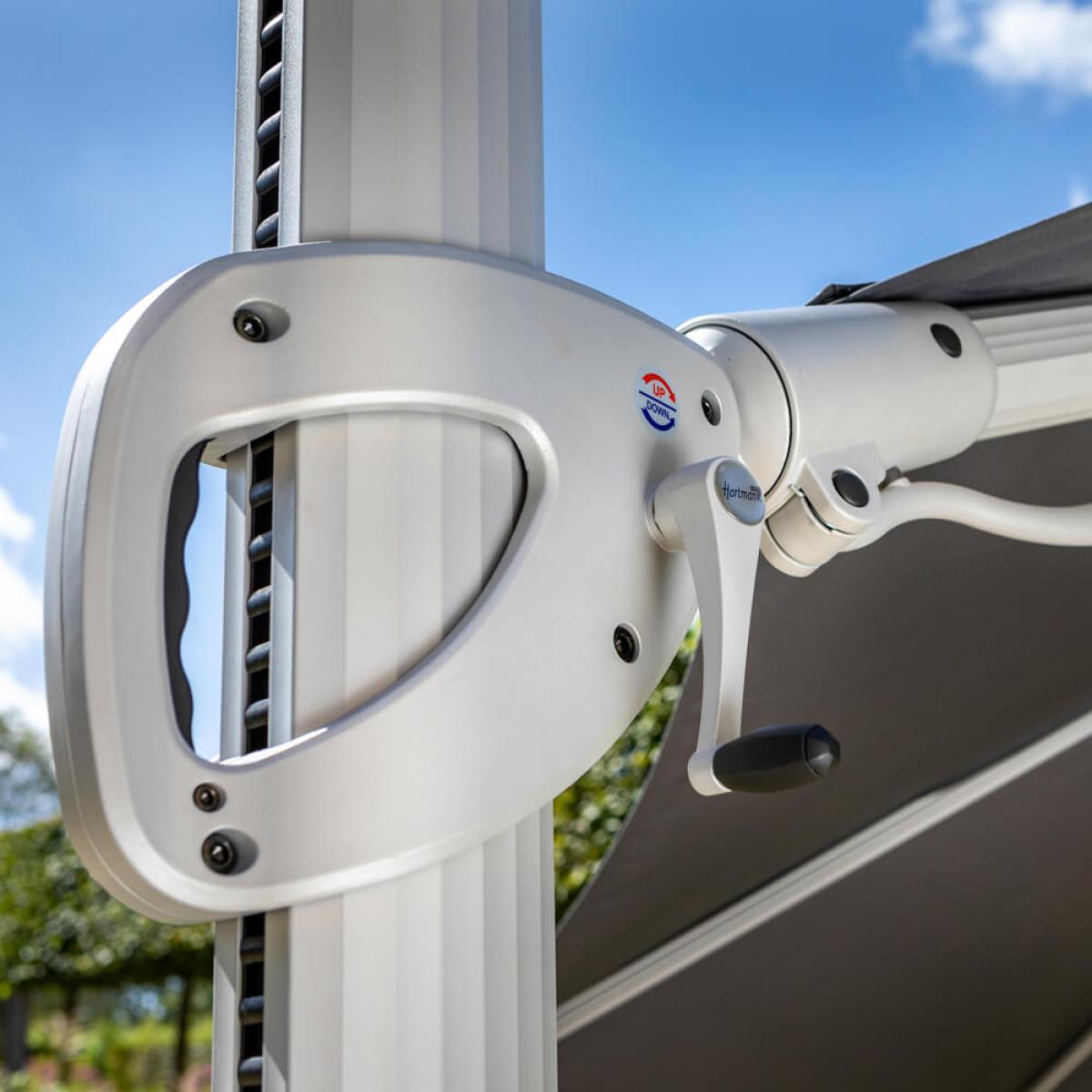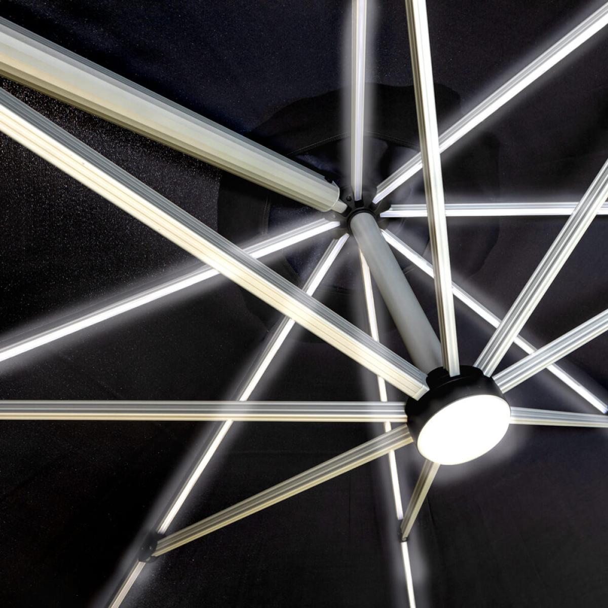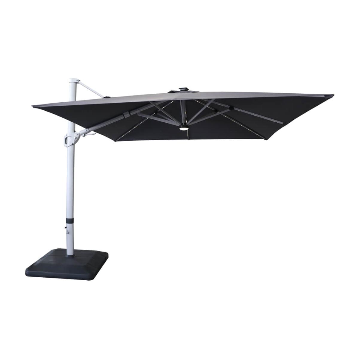 About:. Not just a day use Hartman parasol the Caribbean cantilever parasol will go the distance night and day! An innovative LED lighting system is integrated to the canopy’s under-frame meaning entertaining at night doesn’t have to be a stretch on the eyes. Its sun shading capabilities are a step above too, with a square canopy of a generous 3 metre X 3 metre shade coverage. This shade shield is UPF50+ certified, meaning it will easily obstruct the damaging UV rays from the sun, the umbrella surface also tilts and fully rotates using the easy operate squeeze hand lever, to allow for use at all times of year and hours of the day, position as needed in front of your garden furniture, lawn or loungers. Stability isn’t a concern with this large garden parasol, it comes with a 4 piece segmented resin base that slots together and fills with water or sand, that will hold the structure sturdily against varied conditions, just fold down in high winds. This cantilever parasol comes with a handy Weatherready polyester cover that simply and easily slips over when unused, this cover, like the canopy itself, will repel light showers and short sharp downpours. Just store the parasol in the winter months for best care. Accompanying the parasol is a 4 piece resin base, that will fill with either water or sand, and creates a sturdy anchor. When not in use simply empty and store. Seeing as socialising is again on the cards in the near future, this sun shade come patio-lighting aid will go the distance for your afternoon and evening get togethers. Hartman Caribbean 3m Square Cantilever Parasol Key Features:.