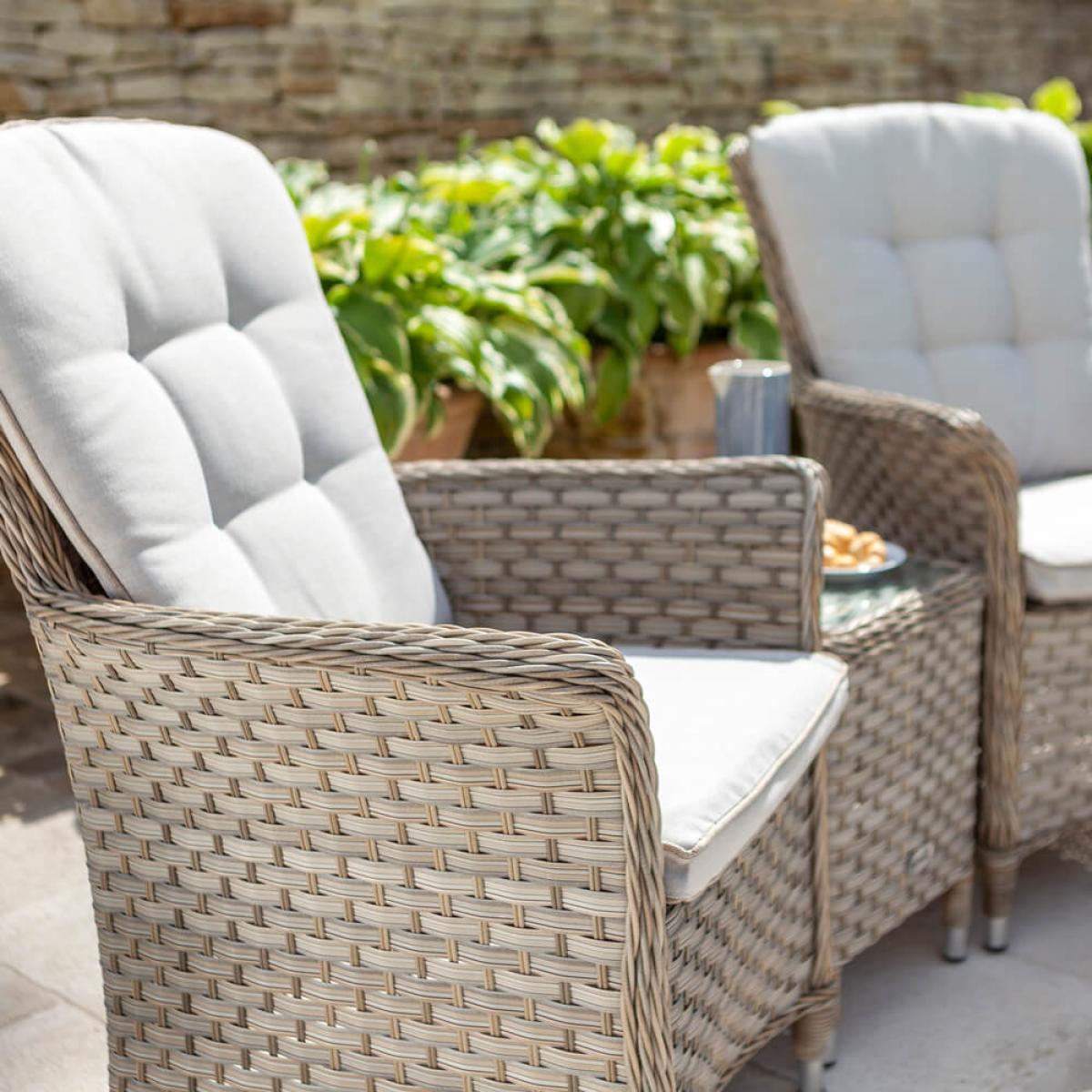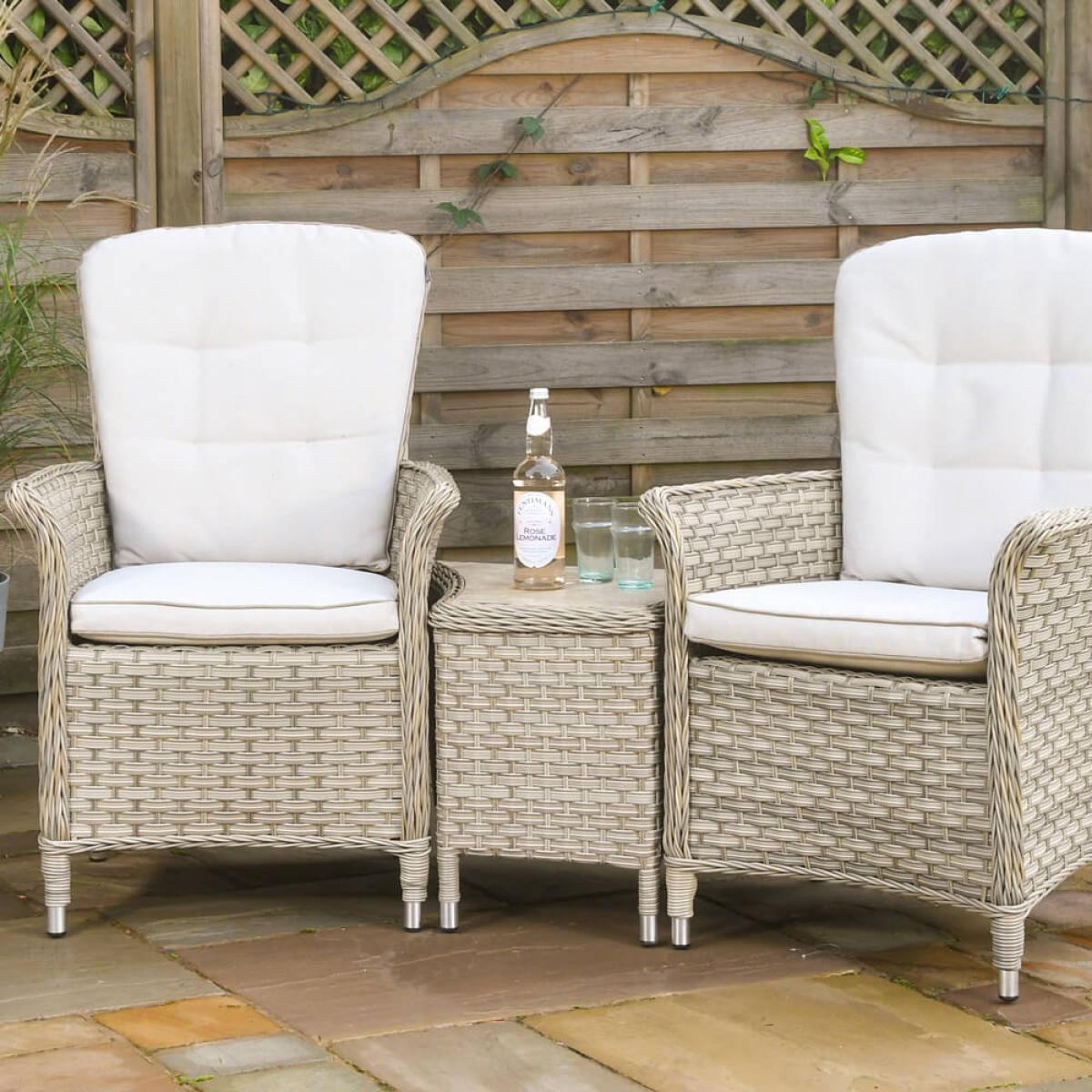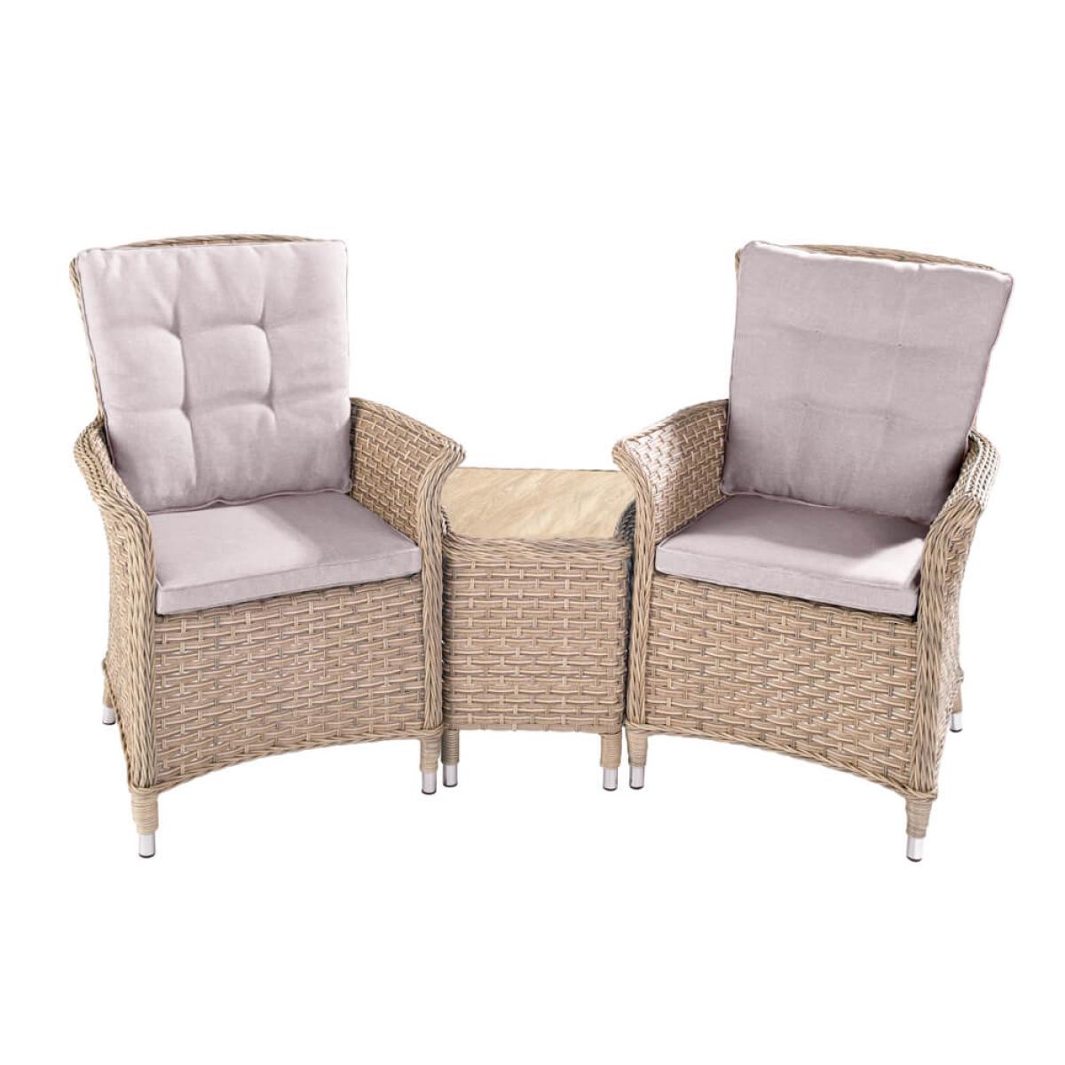 Set consists of:. About:. This Hartman Heritage Duet set is perfect for enjoying a glass of wine while watching the sunset on a Summer’s evening. The table is topped with a durable and lavish Tuscan ceramic glass, uniquely good looking and easy to clean. Made from a hand-woven resin weave over an aluminium frame, the outdoor patio furniture that makes up the Hartman Heritage Duet Garden Coffee Table Set is robust, durable, and surprisingly lightweight. As a result, the chairs and table can be safely left outdoors all year round. The Weatherready® cushions provide a level defence against temperamental British and Irish weather, deflecting lighter showers and simply allowing heavier deluges to pass all the way through the specifically designed permeable layers and out through the underside, drying in line with local conditions. This lovely looking patio bistro set would look just as lovely on a lawn, decking or in a conservatory. Protect the two chairs against the harsher winter weather and to give the furniture a longer lease of life with the specially designed. Hartman Heritage Armchair Protective Cover. , just be sure to double up for protection of both chairs, store the table on one of the chairs during covering.