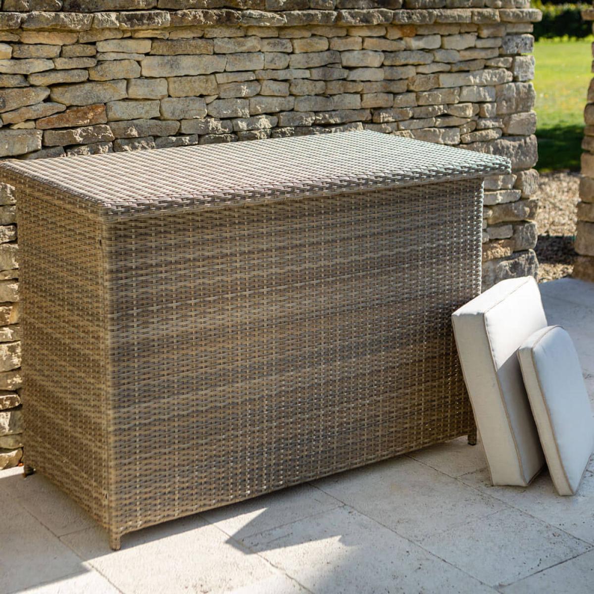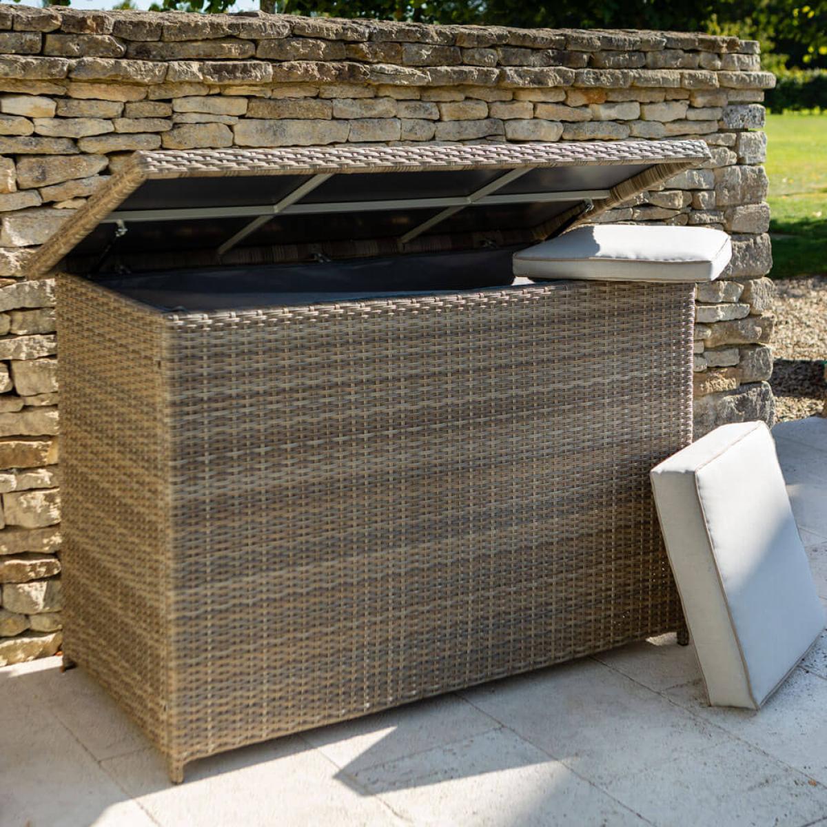 Set consists of: 1 x Hartman 2021 Cushion Storage Box (cushions not included) - BeechAbout:. The Westbury Cushion Box is a tasteful storage unit for your garden dining set cushions finished in the same Beech shade synthetic rattan wicker as seen across the whole Westbury range. But it won't just befit this selection alone such is the pleasing neutrality of this colour simply use for any cushion set you may require it for. Built on a sturdy yet lightweight aluminium frame that will remain completely rust free this box like all rattan garden furniture will stand up to the tests of the elements completely. Although Hartman's Weatheready® cushions will certainly deal with short sharp showers even hours of dismal light rain we do still recommend a cushion box for best care and the same for any brand cushion sets in our glorious garden furniture ranges. Why? Well because you simply can't trust British and Irish weather no matter the season. Read below to understand exactly the reason for this. The Weatheready® cushions are developed in mind to repel the ravages of light water damage. The repellent qualities will be a barrier to a certain level of rain exposure after this point the water will travel through the permeable layers and eventually straight through the underside of the cushions. With this in mind we do still recommend storing your cushions for longer periods of bad weather during the spring and summer and most certainly all throughout the autumn and winter especially frosty spells this will greatly increase the lifespan of the cushions.