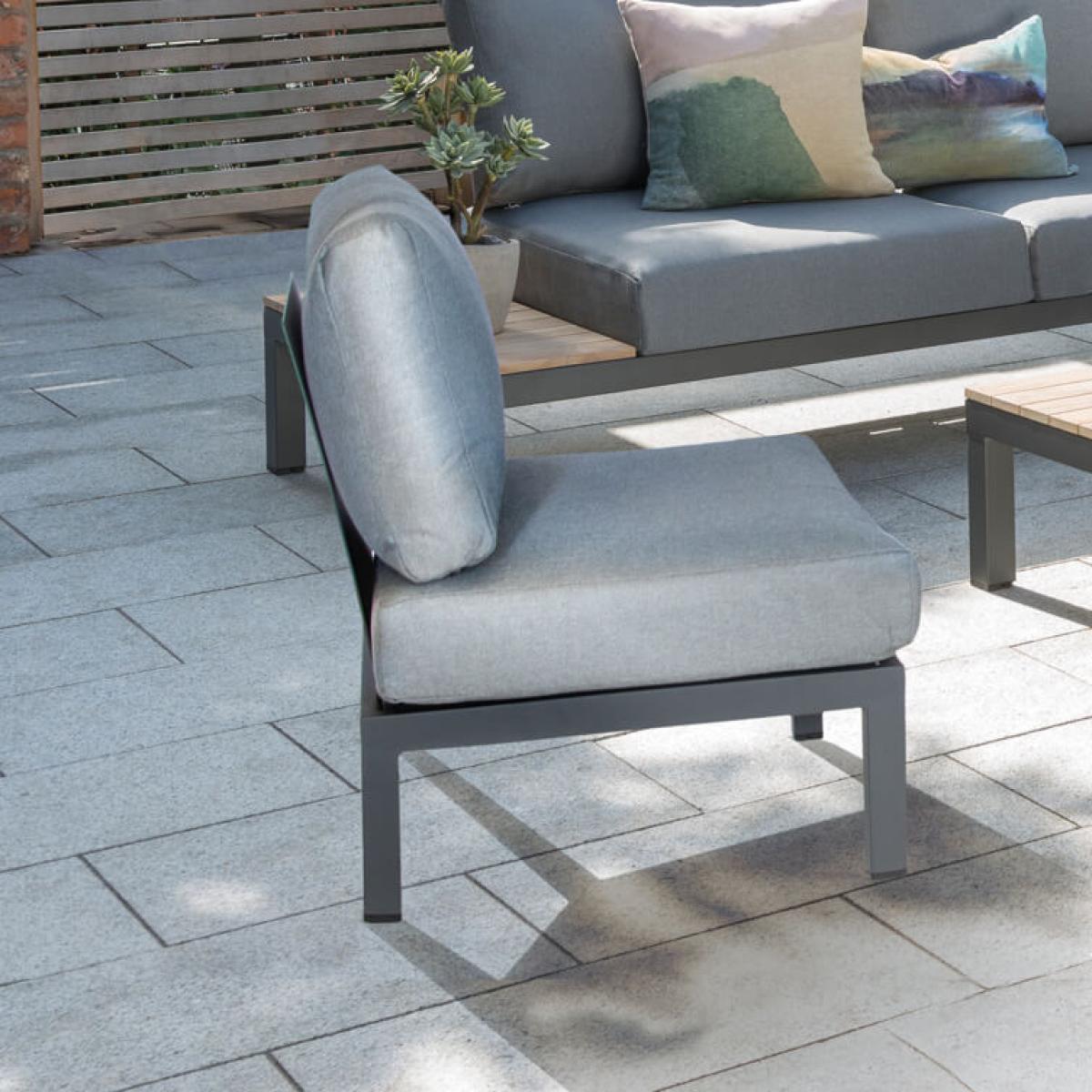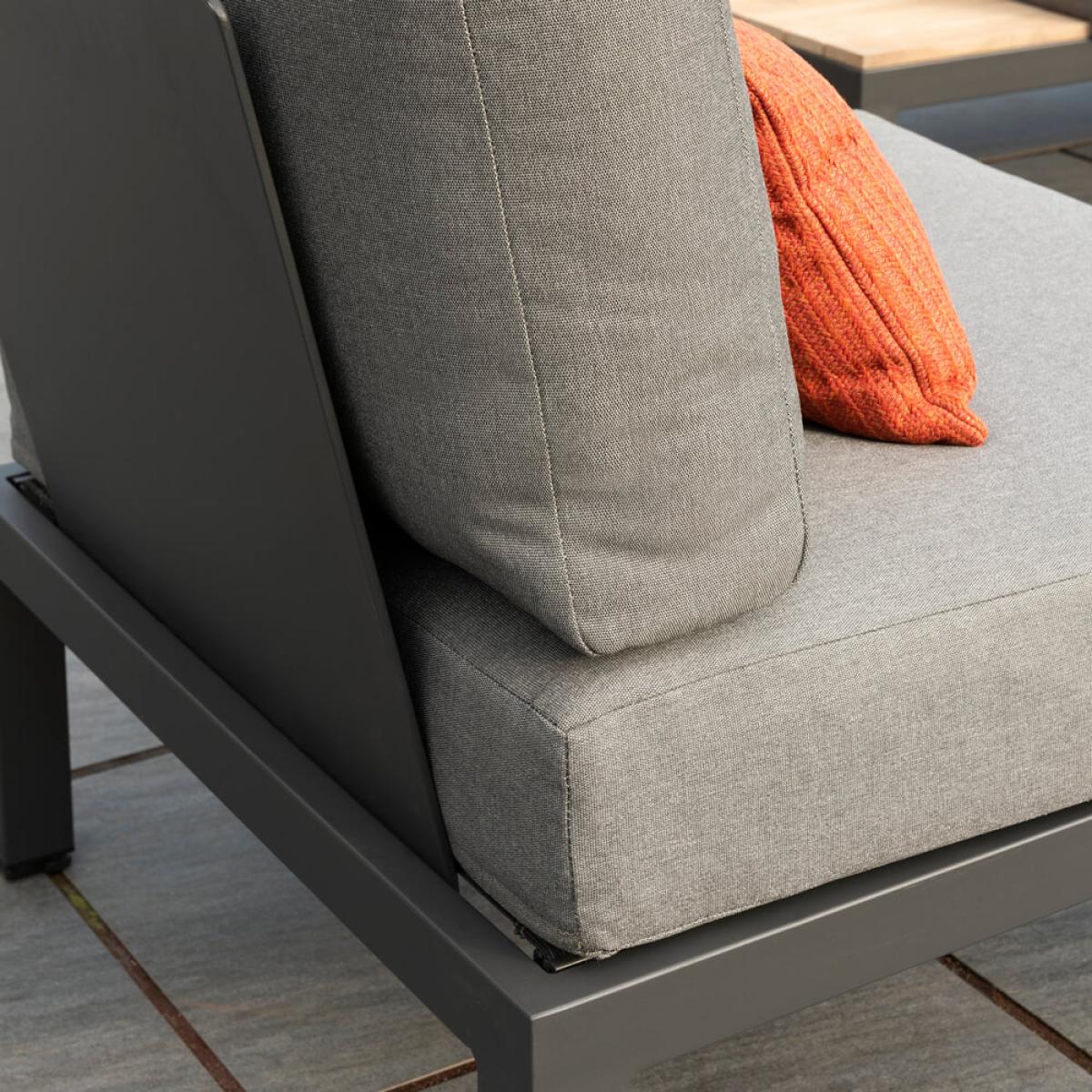 The Kettler Elba side chair is part of the impressive. Kettler Elba range. , a collection that’s new to Inside. Out Living and brings sophisticated cast aluminium designs into the garden with all the high grade quality associated with aluminium outdoor furniture. Add this sleek chair with either the. Kettler Elba Low Lounge Corner Sofa Set. Or. Large Low Lounge Set. To boost the number of seated, where it can either be placed independently or slotted into the sofa sections, allowing a freedom of configuration! A spongey and impressive 5cm core foam fills the cushions of this chair and the cushion holding sling design integrated with the base adds comfort and convenience. As this chair is the same as the aluminium garden sofa of the sets, it’s completely resistant to rust so is fine to be left out year round, just store the cushions indoors when not in use. Configures precisely with the following sets:.