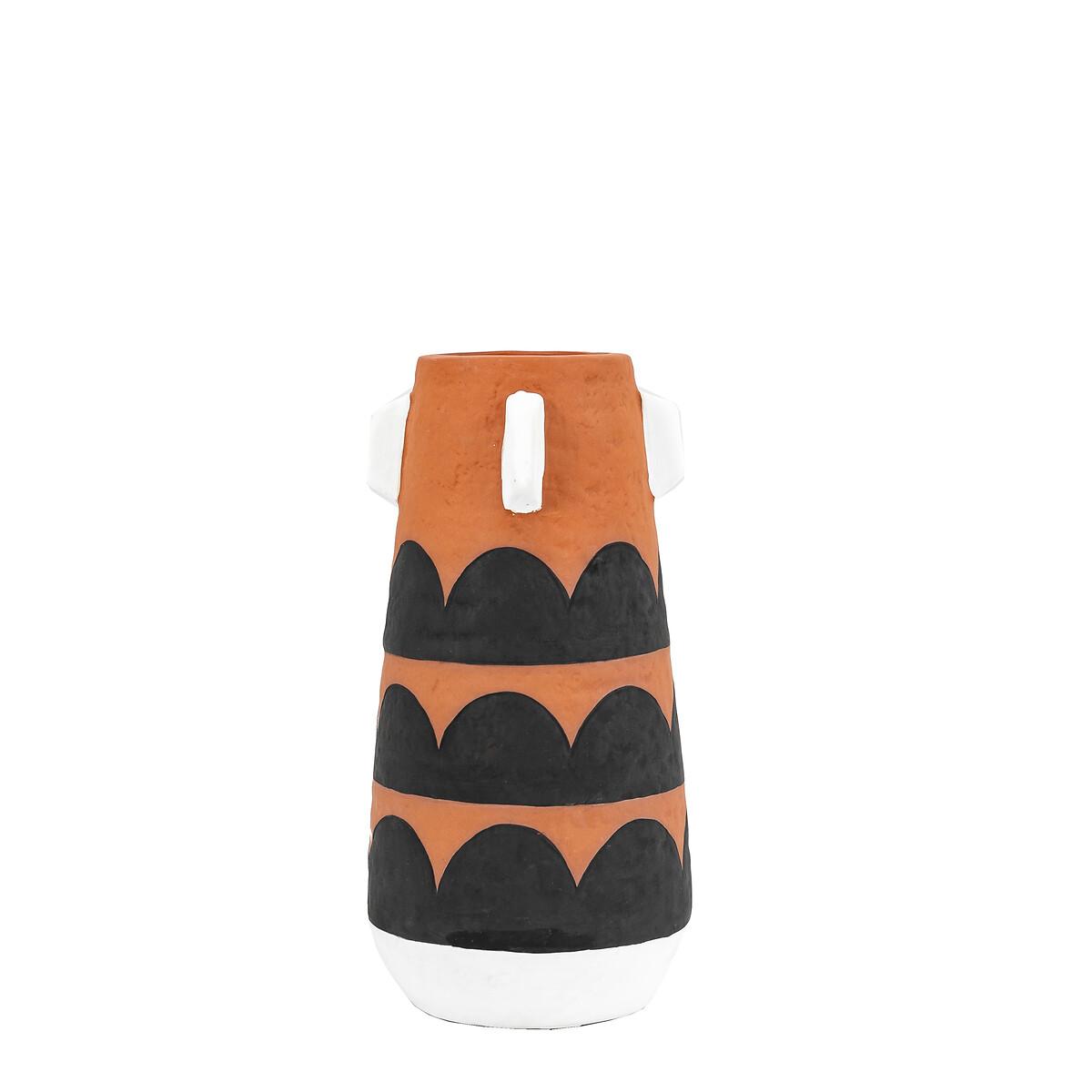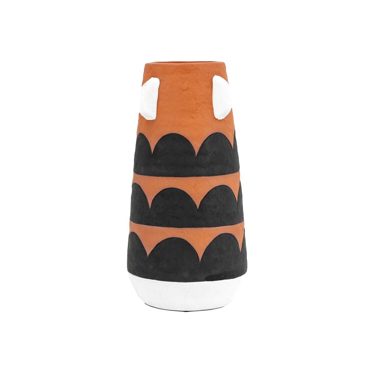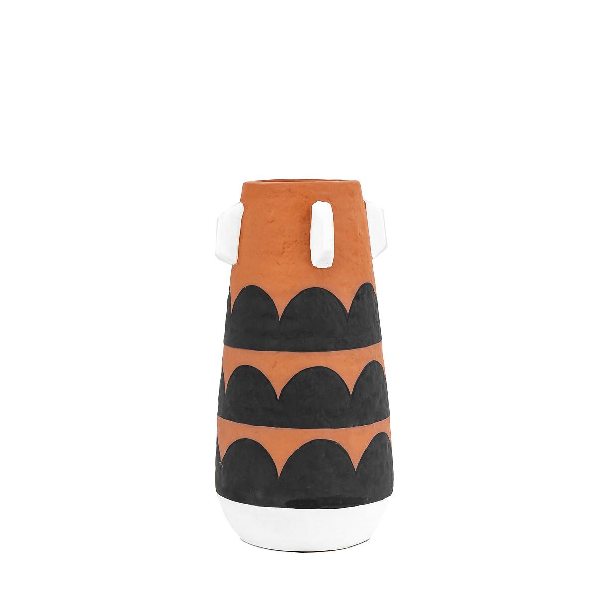 I love this vase because of its bold, earthy tones and sculptural form, making it a versatile statement piece. It works particularly well in contemporary or boho interiors, where natural textures and colours are key. For styling, try combining it with dried botanicals or tall, understated greenery to highlight its shape without overwhelming the space. Because of its size, it’s perfect as a standalone feature on mantels, side tables, or open shelving. To keep the look balanced, pair it with neutral or layered textures - like woven baskets or soft textiles - to create a warm yet modern aesthetic.