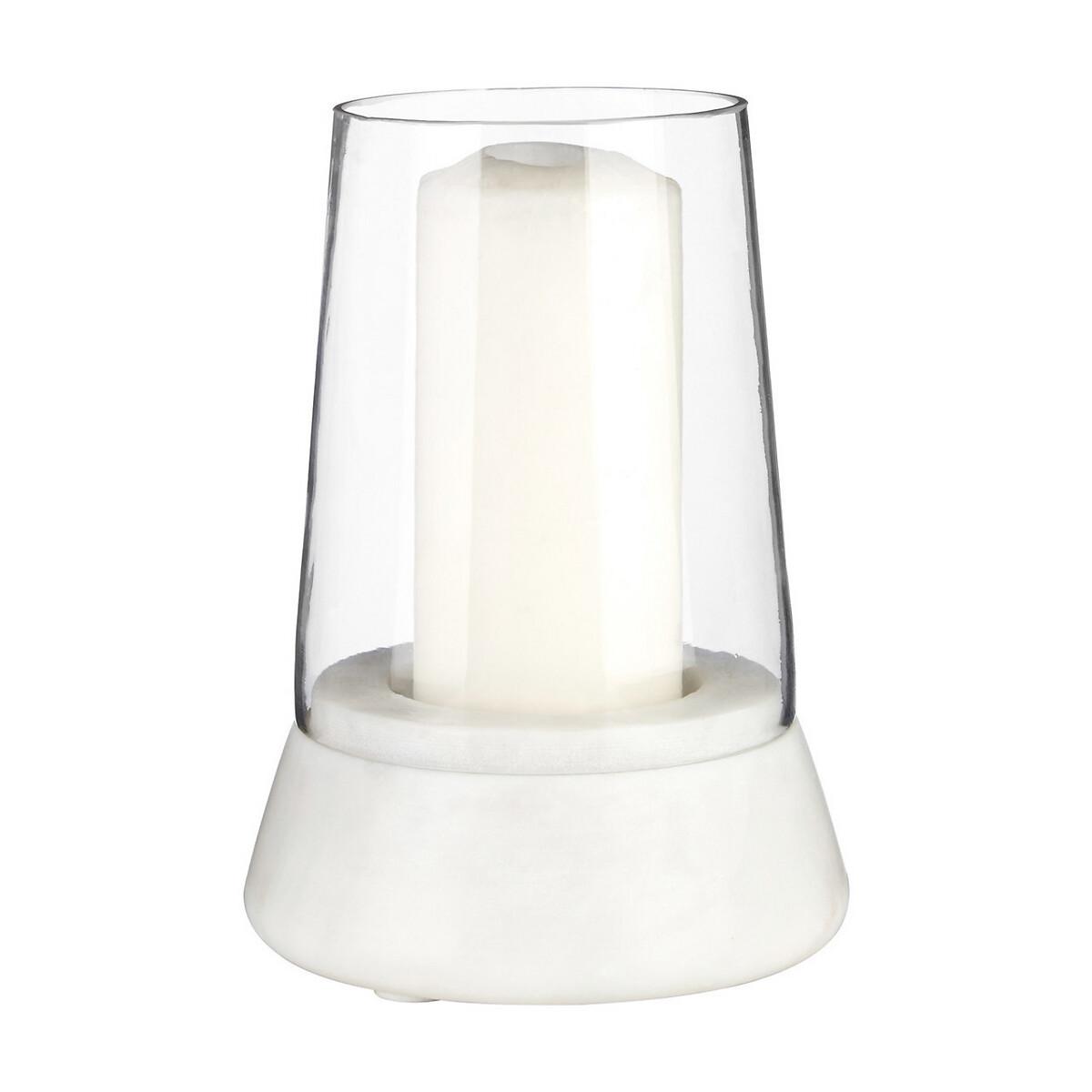 This being a 20cm marble and glass hurricane, I love how it combines natural and sleek elements for a modern yet timeless look. It works well in contemporary, Scandinavian, or even minimalist interiors, adding a subtle touch of elegance without overpowering the space. For styling, I recommend placing it on a mantelpiece, side table, or centrepiece with a pillar or pillar-style candle inside. For added impact, group a few together at different heights or pair with other natural materials like wood or greenery. It's a versatile piece that can elevate both casual and more formal settings, especially when lit in the evening for a warm, inviting glow.