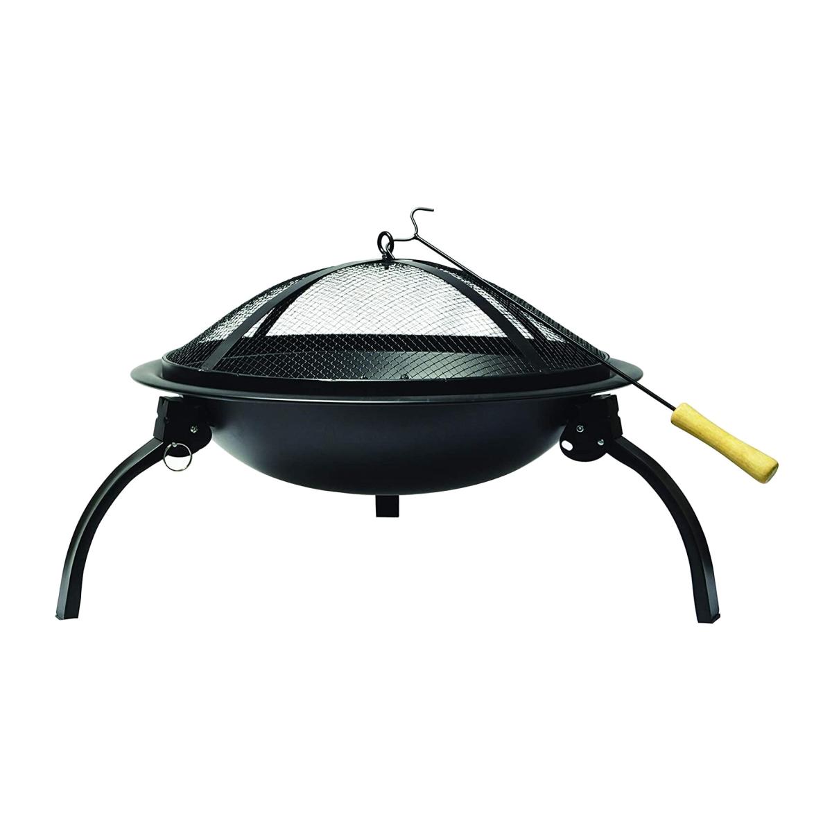 This Round Fire Pit with Lid is a robust but lightweight fire pit which features strong and sturdy foldable legs, along with a mesh lid to help keep the fire contained. The fire pit can be used with fuels such as wood, logs, charcoal and more and is an distinctive heat conductor. This makes the fire pit distinctive for outdoor garden parties, BBQs, camping trips and late evenings with family and friends. Along with easy to read instructions is a poker and all the required screws and fittings which make for a quick and easy assembly and can just as easily be dismantled. n Ideal for storing the fire pit away when not in use or for packing up on camping trips.